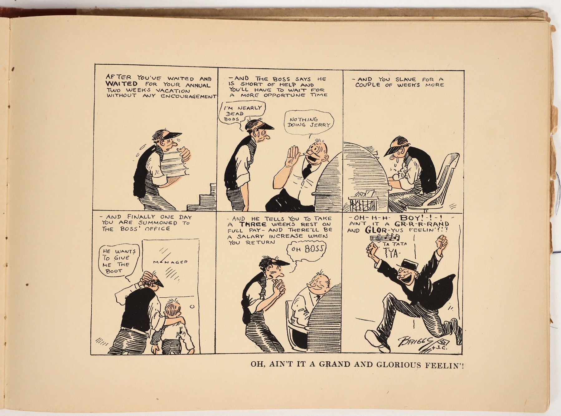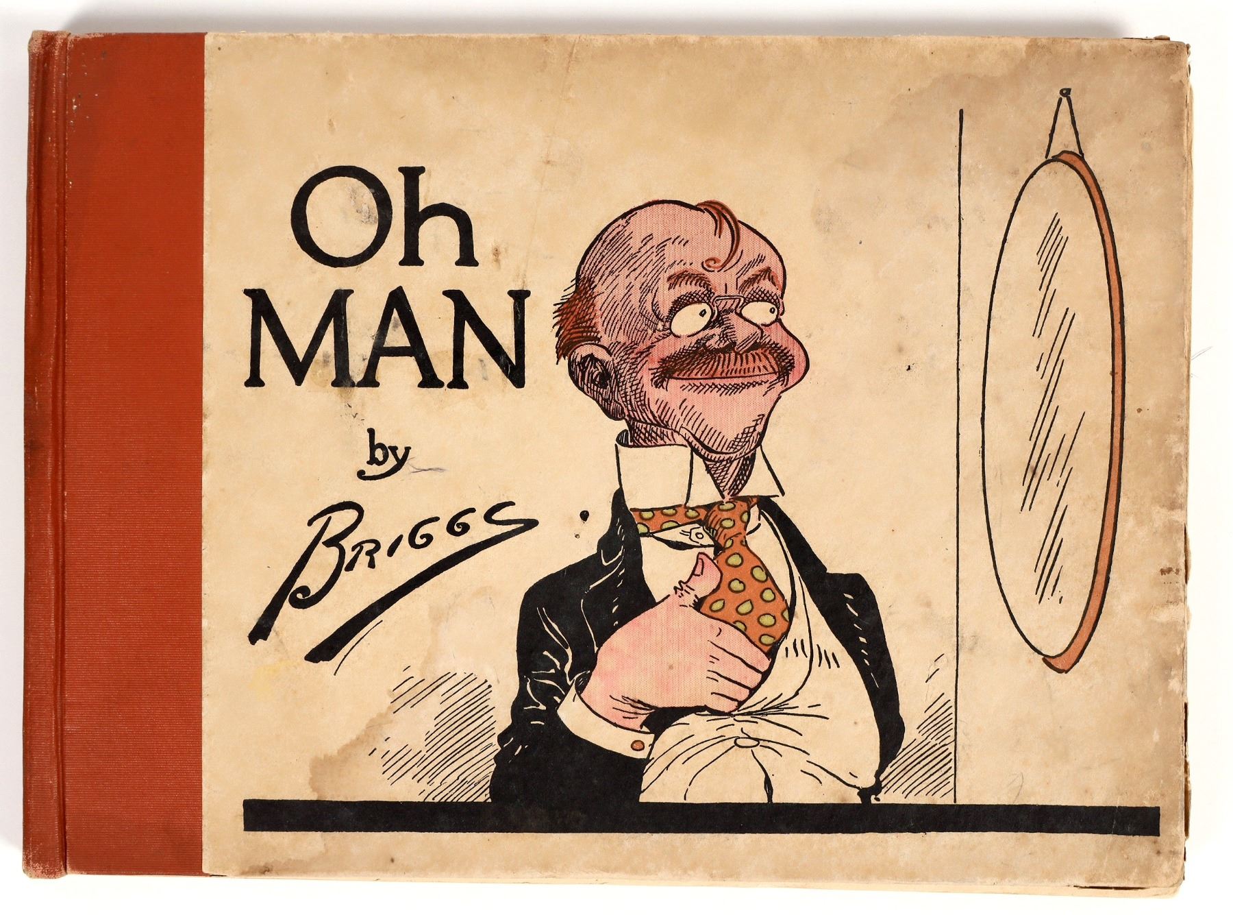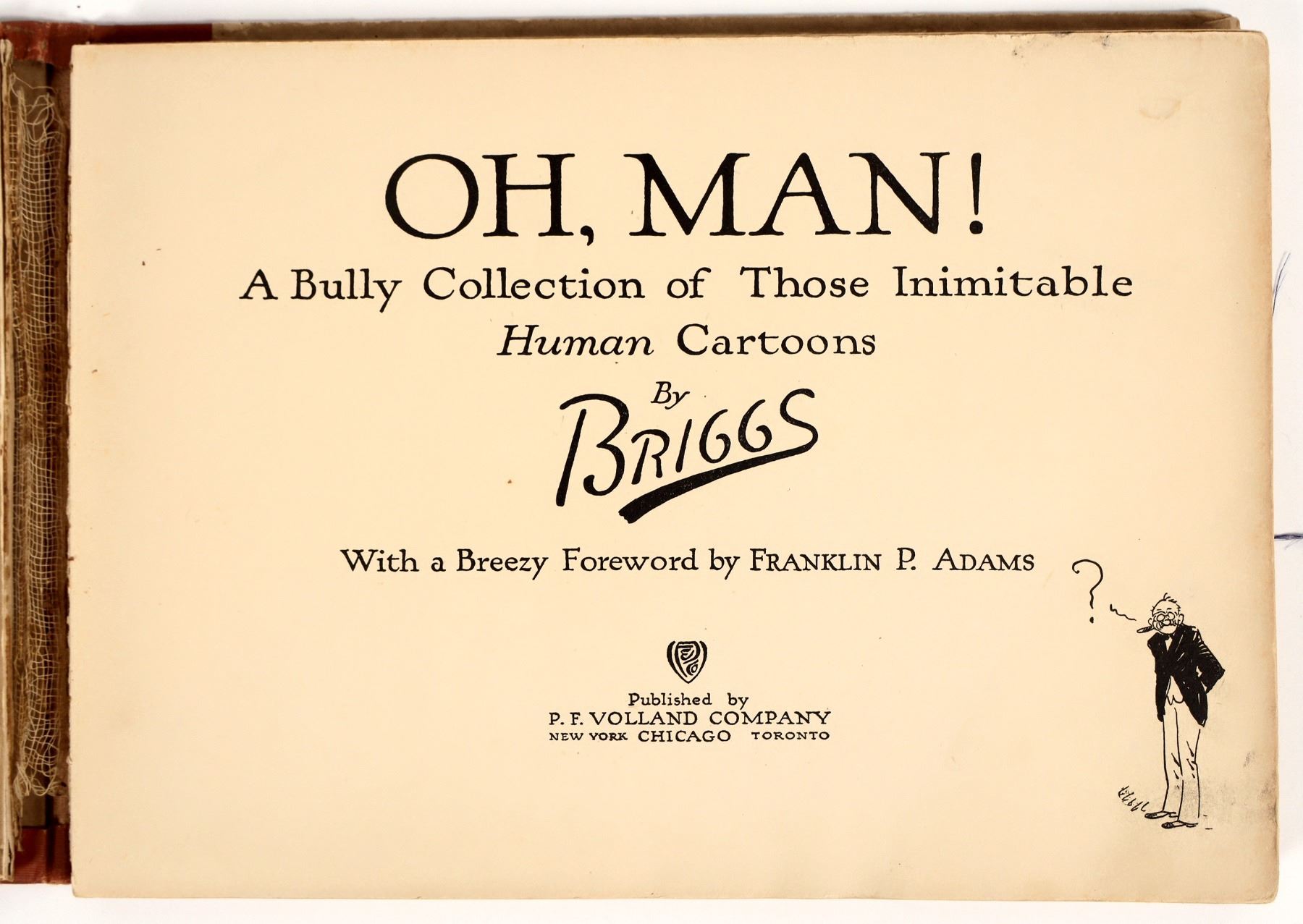 Oh Man By Briggs Clare Comic Strip Book, Hardbound book of illustrated cartoons on the human condition c1919. Very popular at the time. Cover is separating from the binding, inside pages are in tact, not numbered but more than 50.