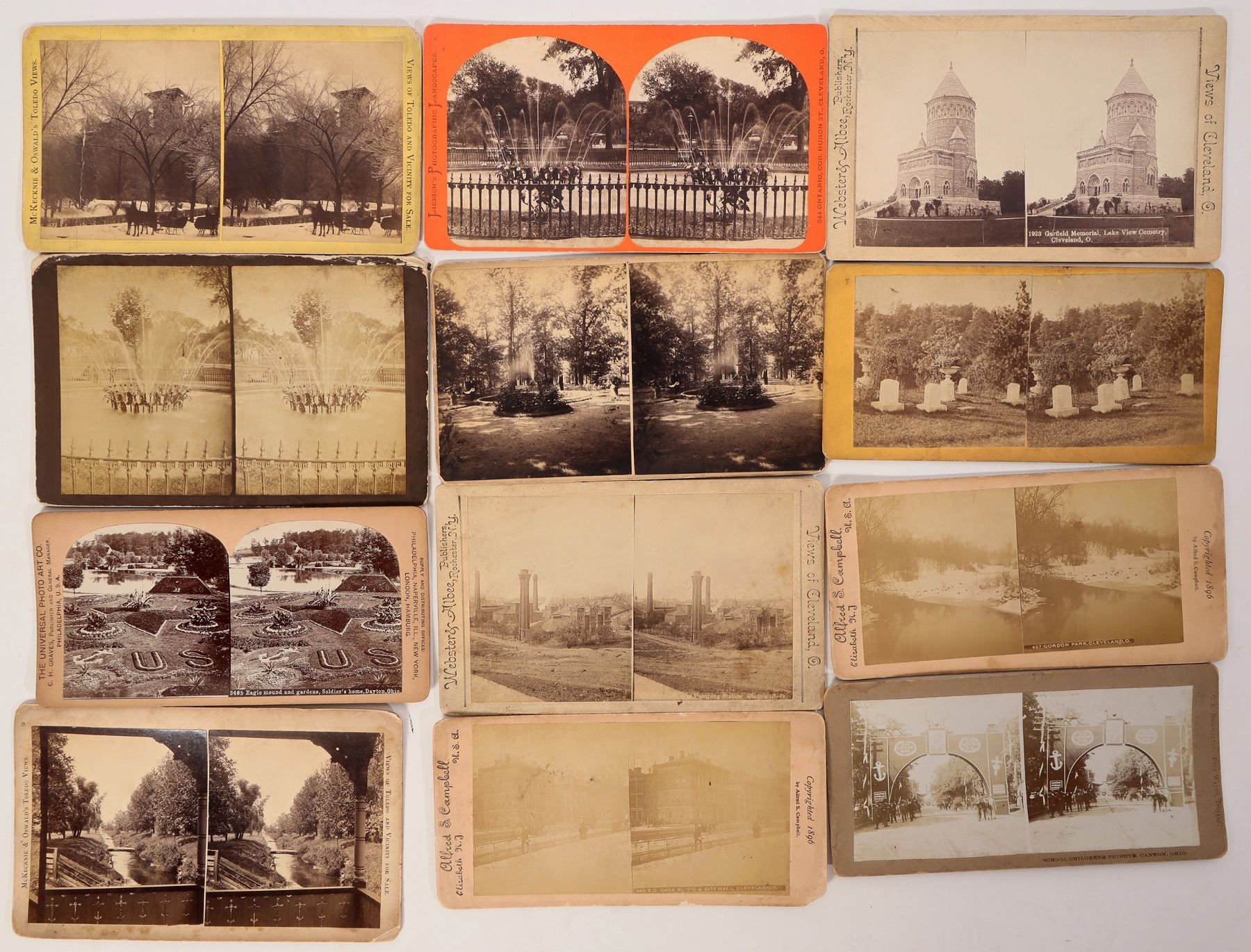 12 Ohio stereoviews. Toledo, Canton, Dayton, Cleveland etc. Some with low contrast, please inspect.