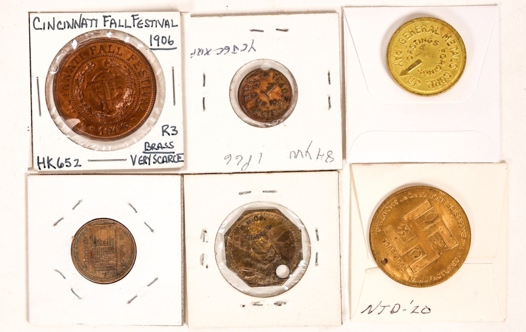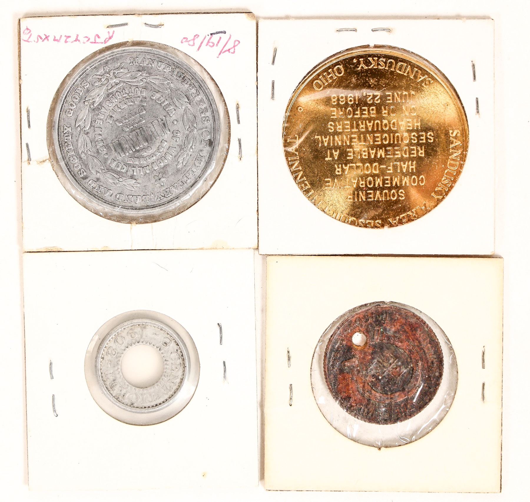 Transportation, trade tokens; medals: 1906 Cincinnati Fall Festival (HK-652); 1968 Sandusky Sesquicentennial; 1851 Exhibition Palace London by Kinsey Silverware of Cincinnatti, and many more. [ Ohio