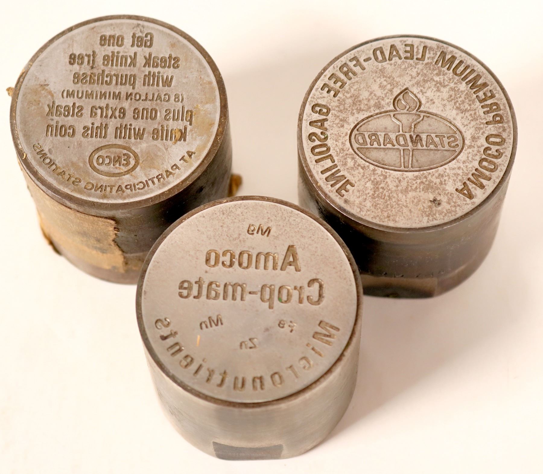 Amoco Gas and Oil , Enco Oil Company, Standard Oil Company dollar-sized dies. From the Northwest Territorial Mint Historical Die Collection.