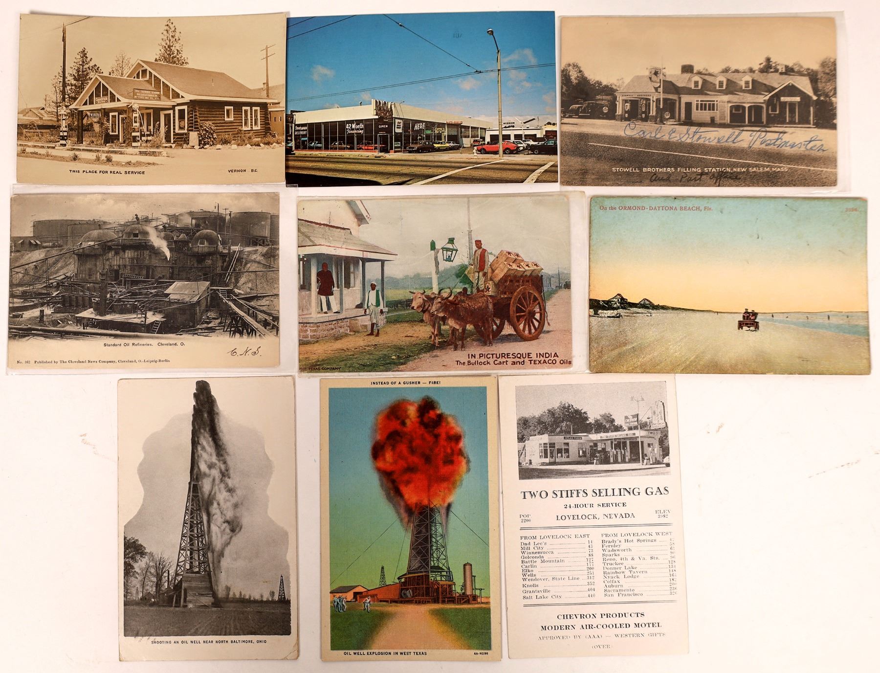 A large collection of about 125 postcards in oil and energy related themes. Includes gas stations, cars, tires, brakes, service stations, oil fields and more! A nice variety in this group to expand your collection!