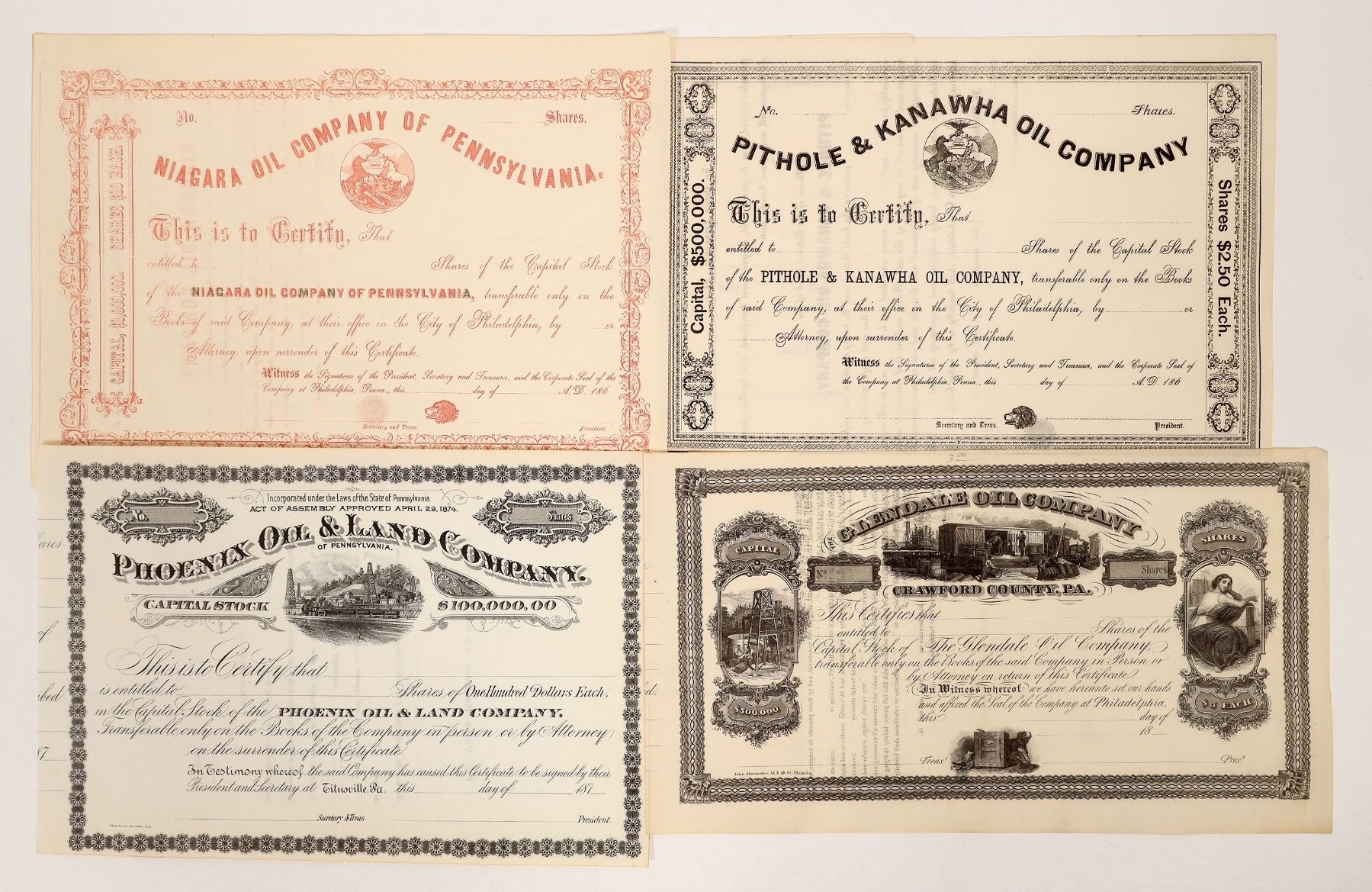 Unissued stocks-Pithole & Kanawha, Glendale, Crawford County, PA. Phoenix Oil & Land of Penn., Niagara Oil of Penn.