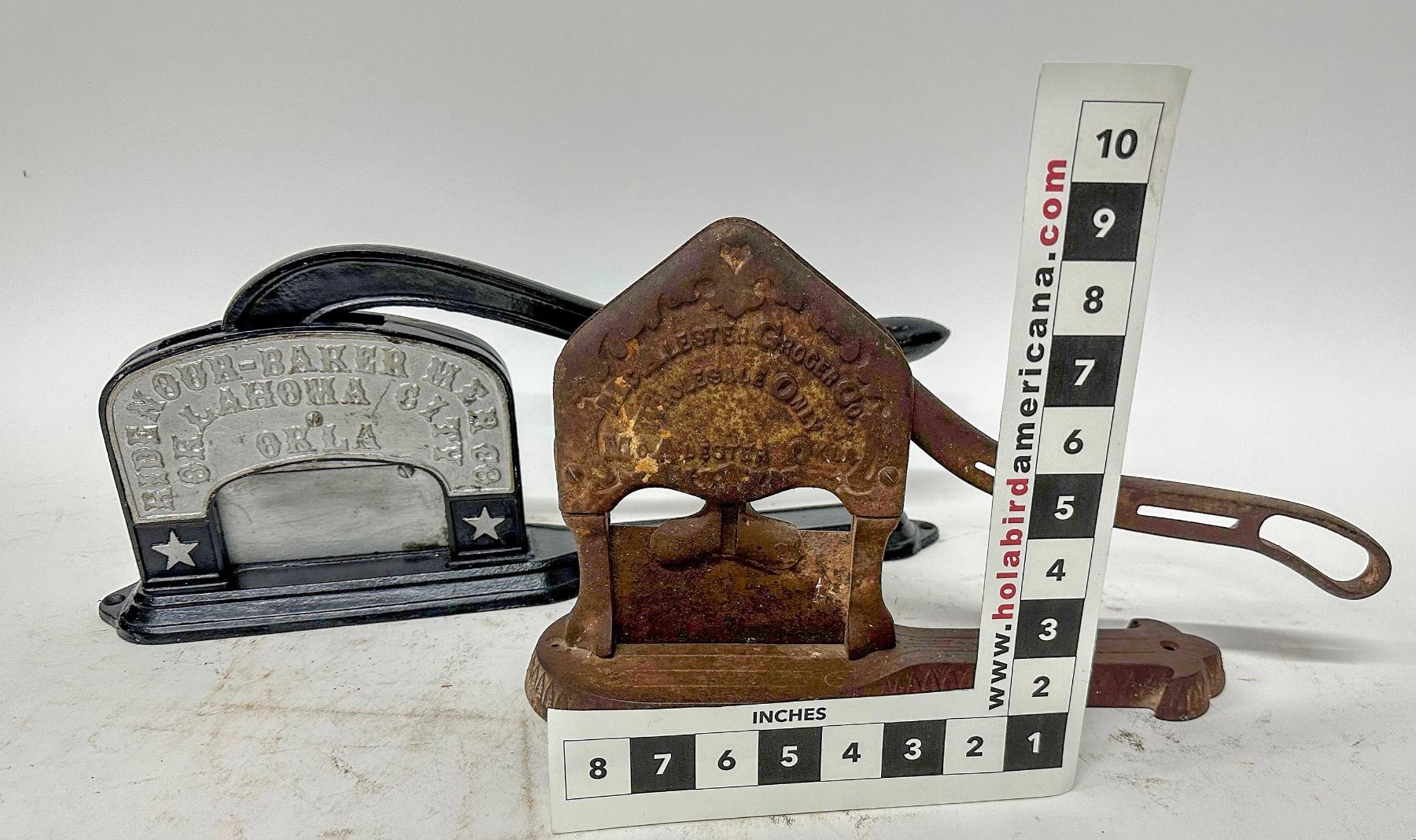 1) Ridenour -Baker Mer Co / Oklahoma City / Okla. No patent date, long handle & base. Approx. 19".