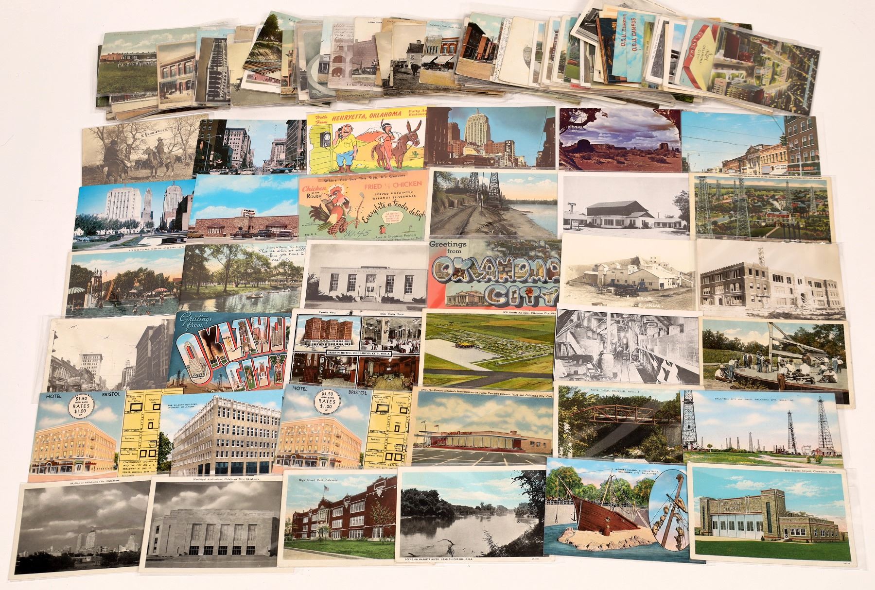 Large collection of postcards from Oklahoma. About 150 postcards c. 1900-1960. 1 Folding Card. About 100 Old Cards (6 Oil and Mining). White-boarder About 50. Modern 12. RPC 4.
