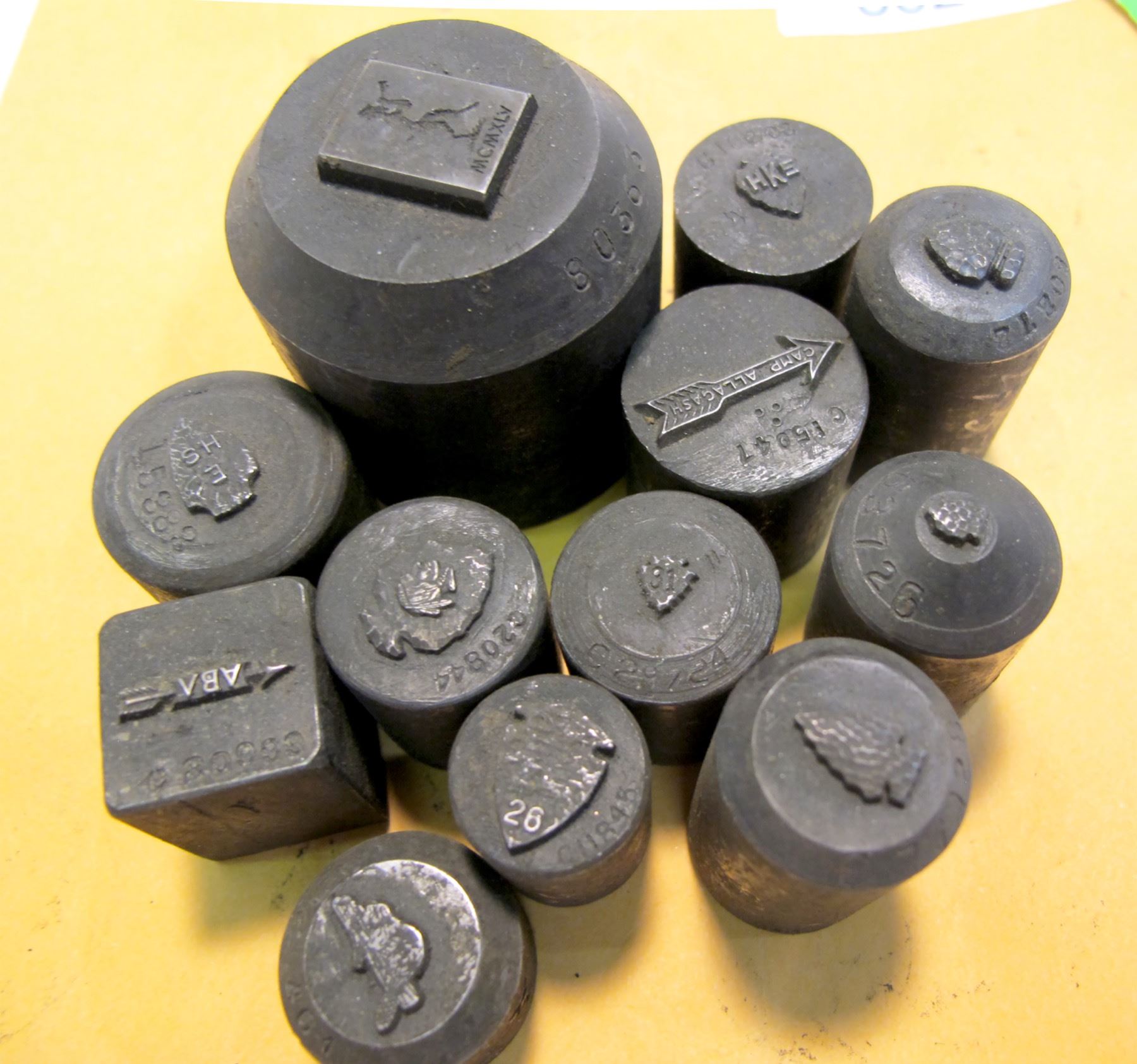 12 old arrowhead die hubs, approx 14-24mm. Northwest Territorial Mint Historical Token Die Collection State: City: Date: c1903-1950 HWAC# 86210