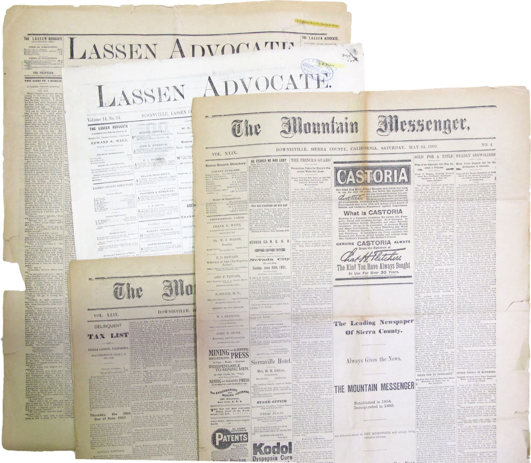 2 Downieville Mountain Messenger 1902, 2 Lassen Advocate(Susanville) 1879. State: California City: Date: 1879-1902 HWAC# 85151