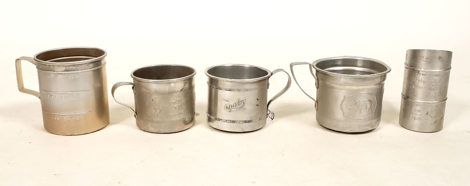 Assorted kitchen tools from days gone by. The collection includes measuring cups, a small cutting board a portable grill and more. Please see photos for more details.