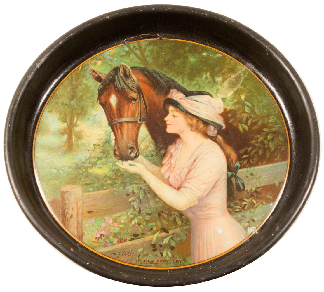 "In Old Kentucky" portrait of a young lady and a horse done by American Art Works. 13" in diameter.
