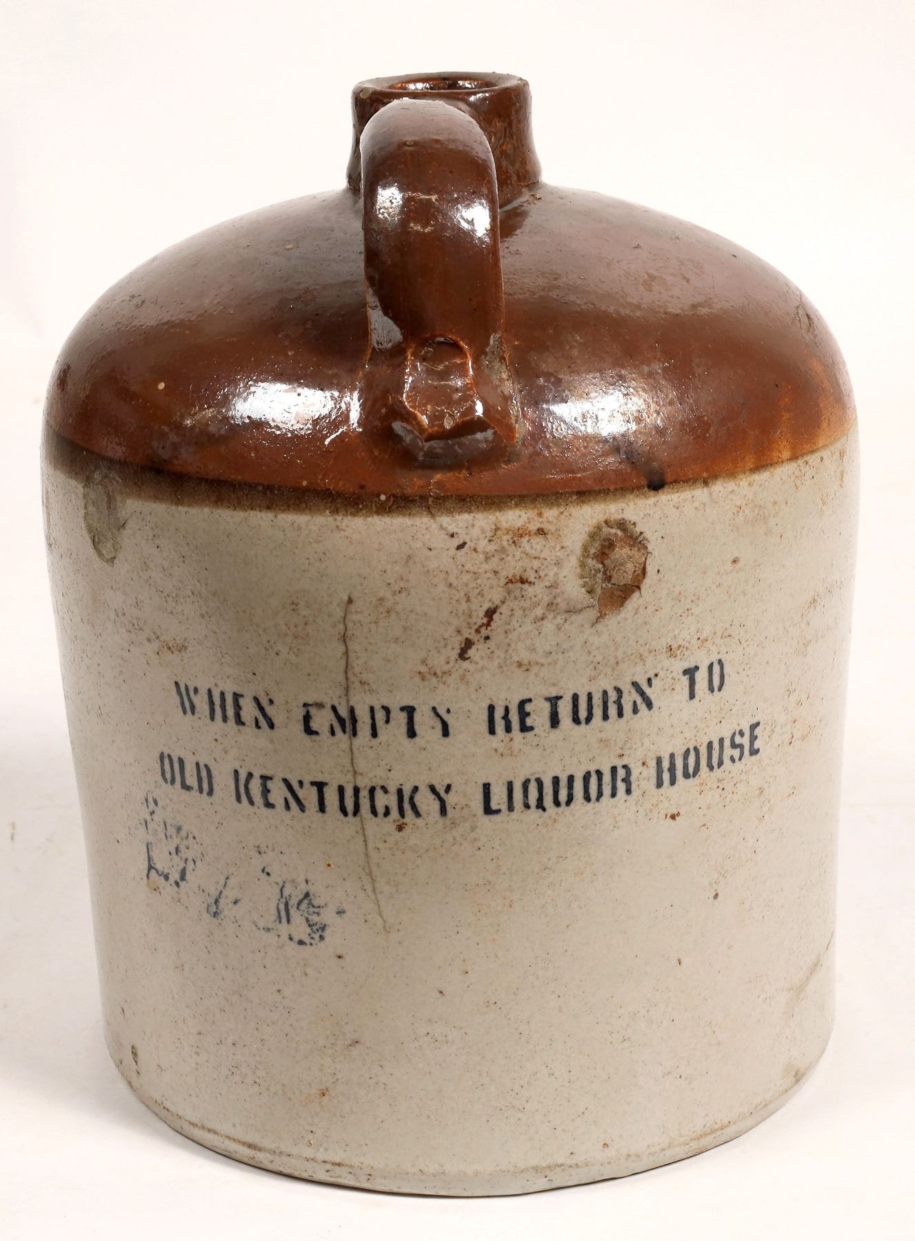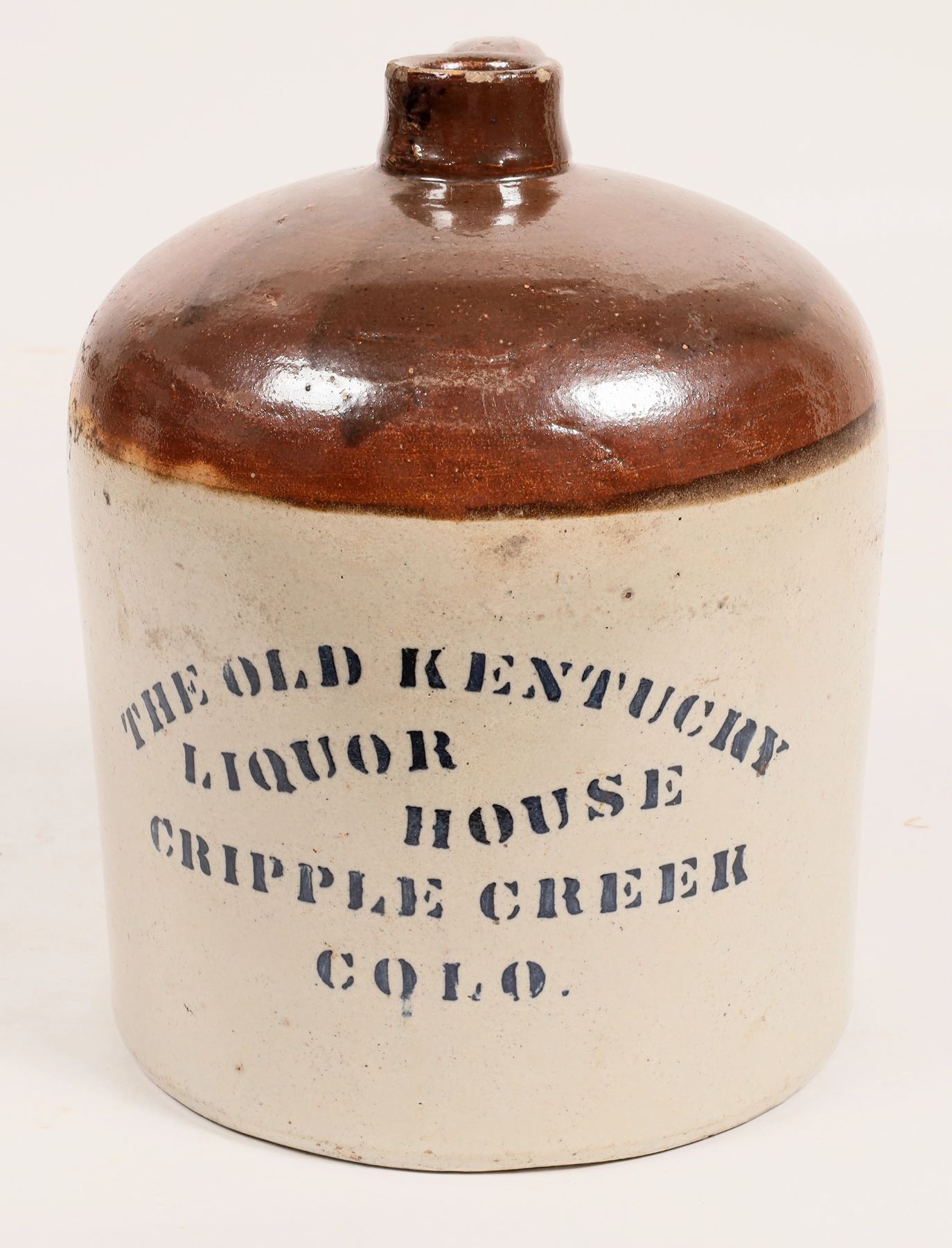 J36 in Preble, unlisted variant. Brown top, The Old Kentucky/Liquor House/Cripple Creek/Colo. 9x7". 4 small lip chips, small chip on rear, 3" rear crack.