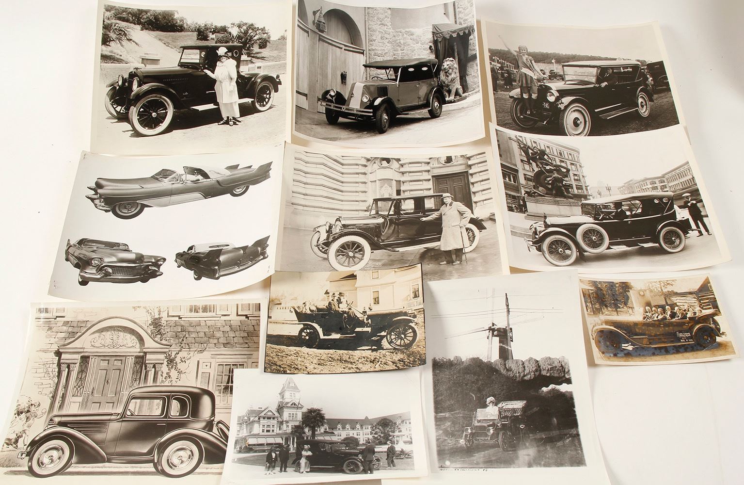 B/w 3 row convertible with many passenger at Pike's Peak 1935-spotting on photo. 1920's at Peninsula Hotel in San Mateo with black convertible. Photo of a photo of an open top car. 1906 Ford 7 passenger. Seven 8" x 10" including 1938 American Bantam, 1928 Renault Touring, 1923 Wills St. Clair, 1920 Kissel, 1922 Studebaker, 1920 Willys Knight and a 1955 Cadillac Custom with 3 rear fins! HWAC# 58671 Date: Location: