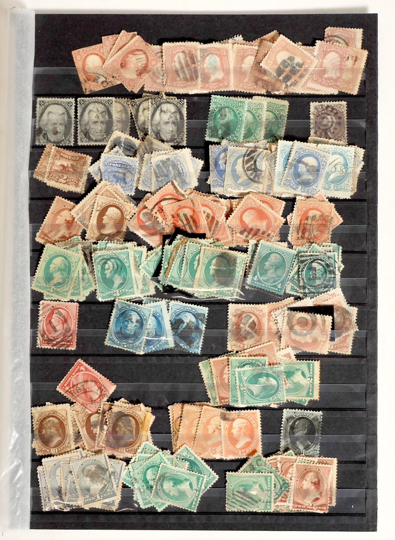 Older regular issue US stamps. Includes some higher denomination. The 3c have not been typed. There could be a discovery among these stamps! About 100 stamps. See photo.
