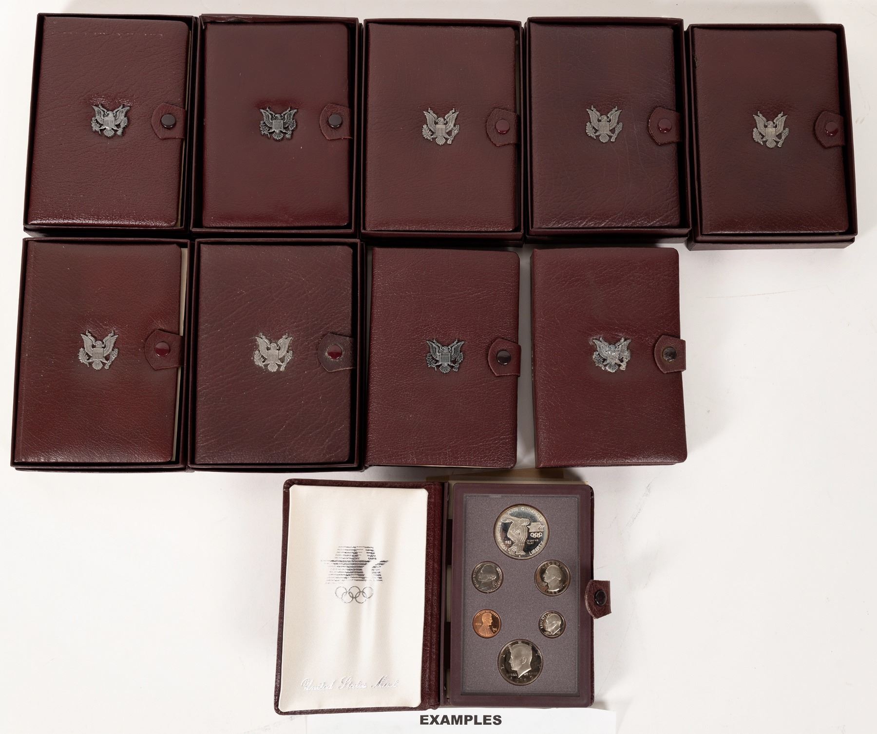 Lot of ten U. S. Olympic Prestige Proof Sets: six from 1983; four from 1984. Each six coin set includes a silver dollar.