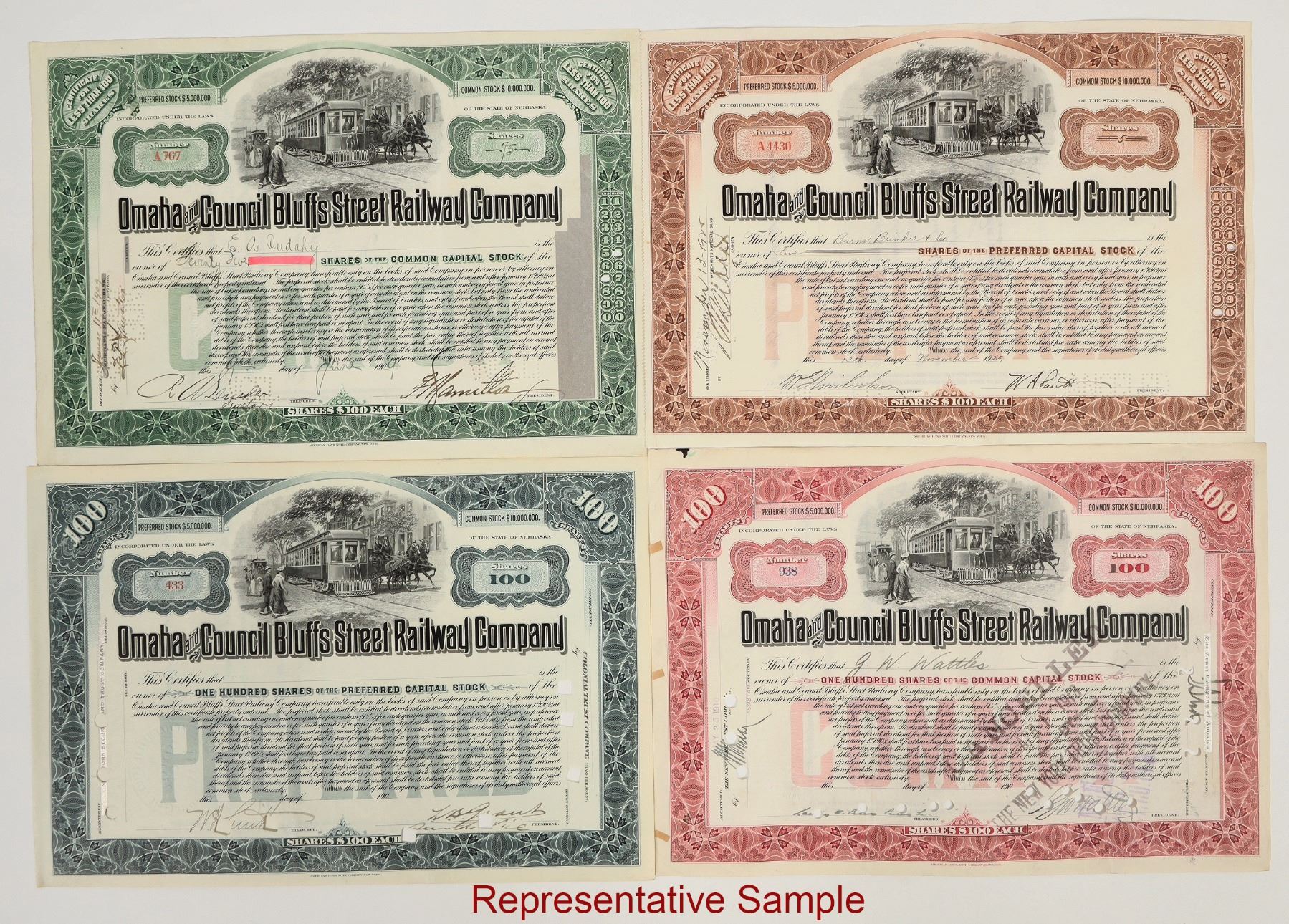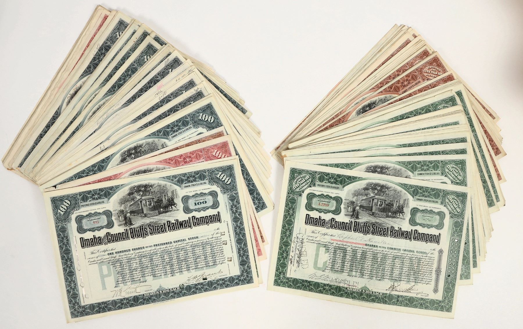 Approx. 50+. U/U, I/U, I/C. Issued 1900-47. Omaha & Council Bluffs Street Railway Co, some have revenue stamps. VG or better cond.