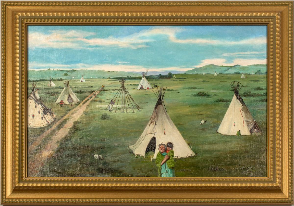 Oil painting of the Great Plains by Elbridge Ayer (E. A.) Burbank (1858-1949). 25.5" H x 36" W. Burbank was an American artist who sketched and painted more than 1200 portraits of Native Americans from 125 tribes. He studied art in Chicago and in his 30s traveled to Munich, Germany for additional studies with notable German artists. He is believed to be the only person to paint the war chief Geronimo from life. City: State: Date: 1938 hwac# 22005