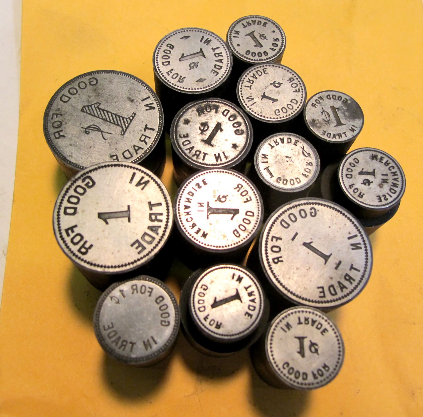 14 One cent token reverse dies for tokens from an unknown Seattle Die sinker, c 1905-1950 from the NWTM historical die collection. State: City: Date: HWAC# 84661