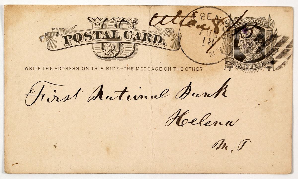This is the example used in Shellen & Dunn and the only manuscript listed. Earliest reported Utica cancel. There is also a light Fort Benton cancel. Datelined Judith Gap and from NL True, "Please send me account of my bank funds to Glendive...We all had Trout for Supper & Breakfast..." City: Utica / Fort Benton State: Montana Date: 1881 ID: 36814