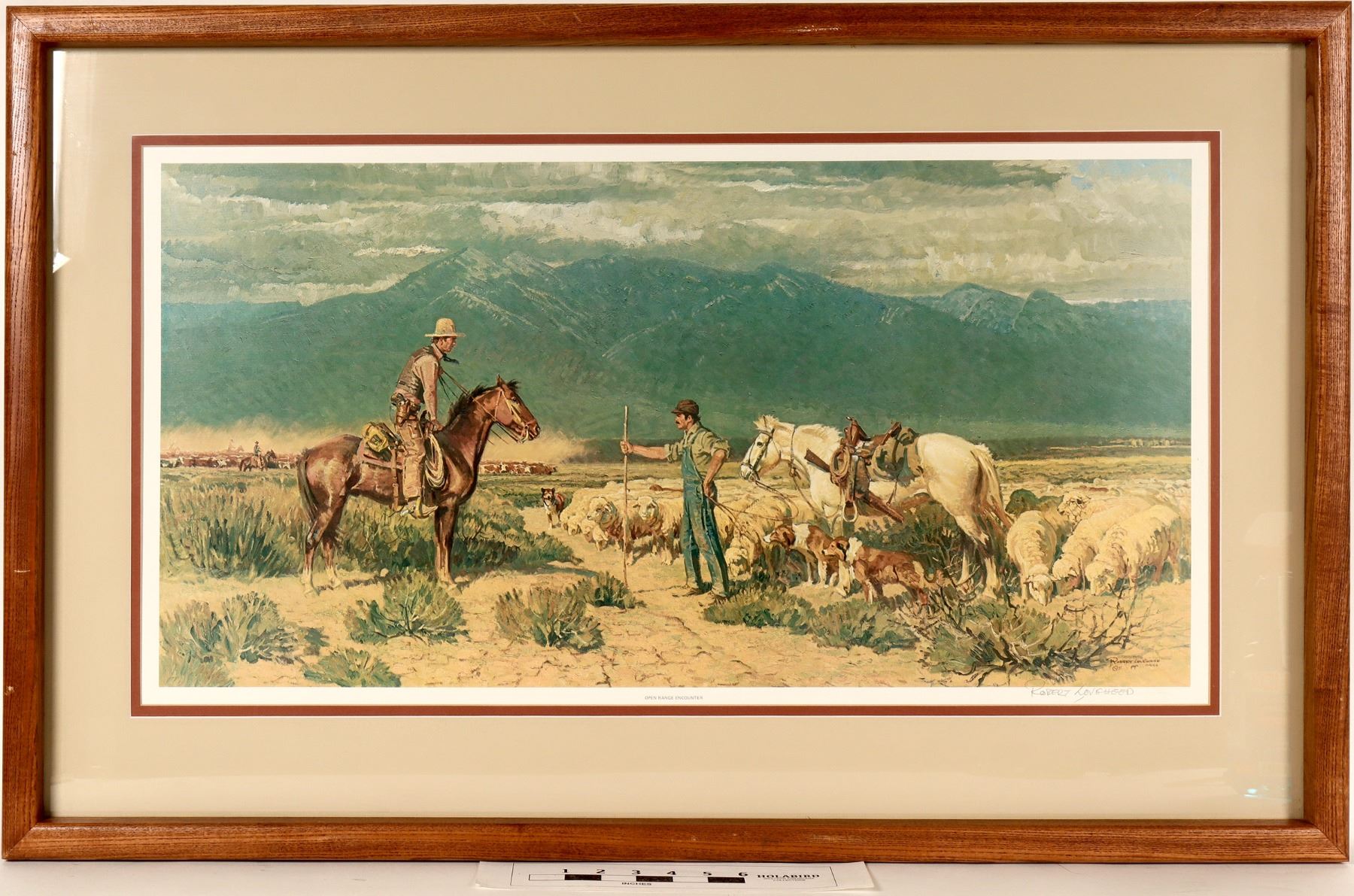 Framed print signed by Canadian artist Robert Lougheed, 1910-1982. Beautifully matted and framed measuring 39 x 24. 1978