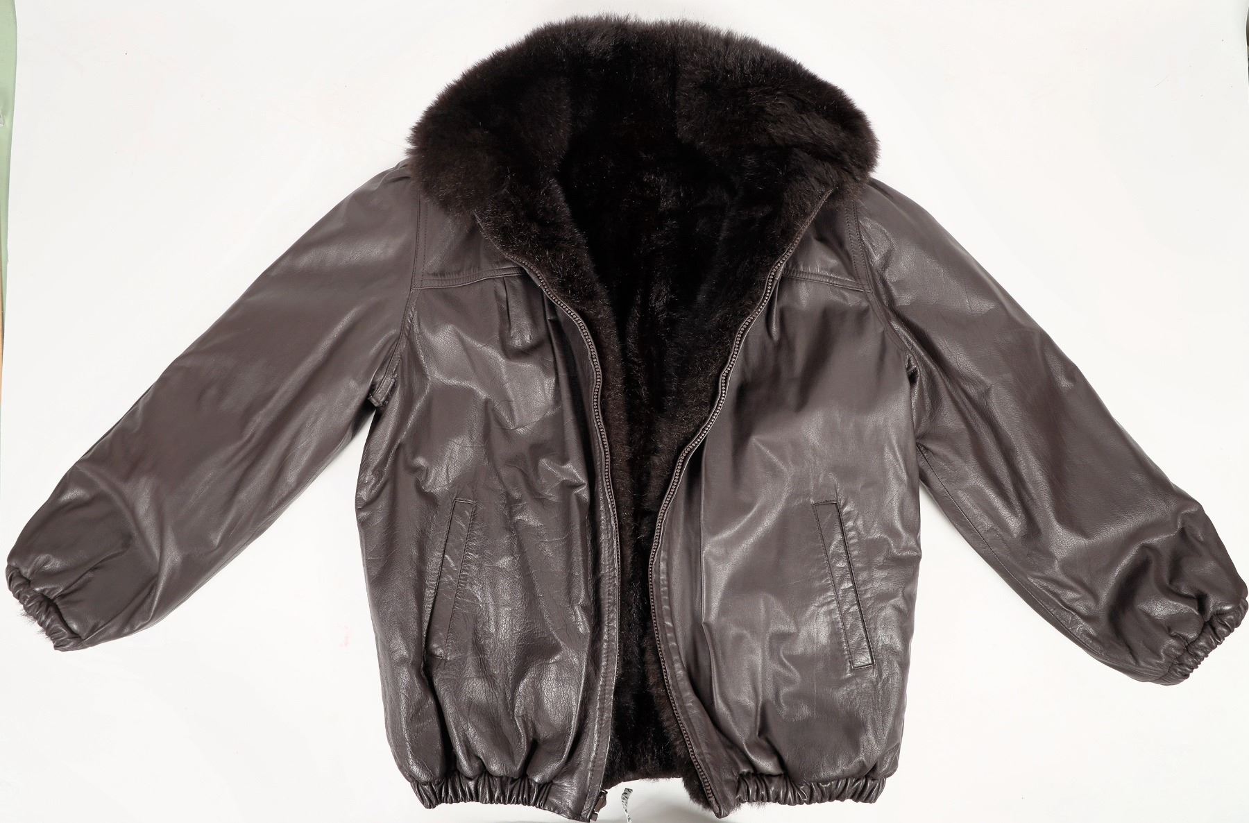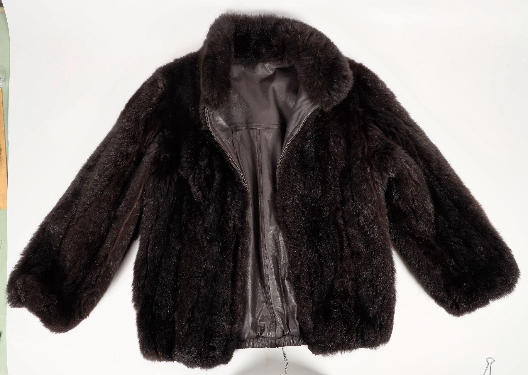 Reversable high quality black possum exterior, fine black leather interior. Size small, short coat. Outside length from armpit to edge of arm is 18" and from armpit to bottom of coat is 16" made in 1985. pristine condition.