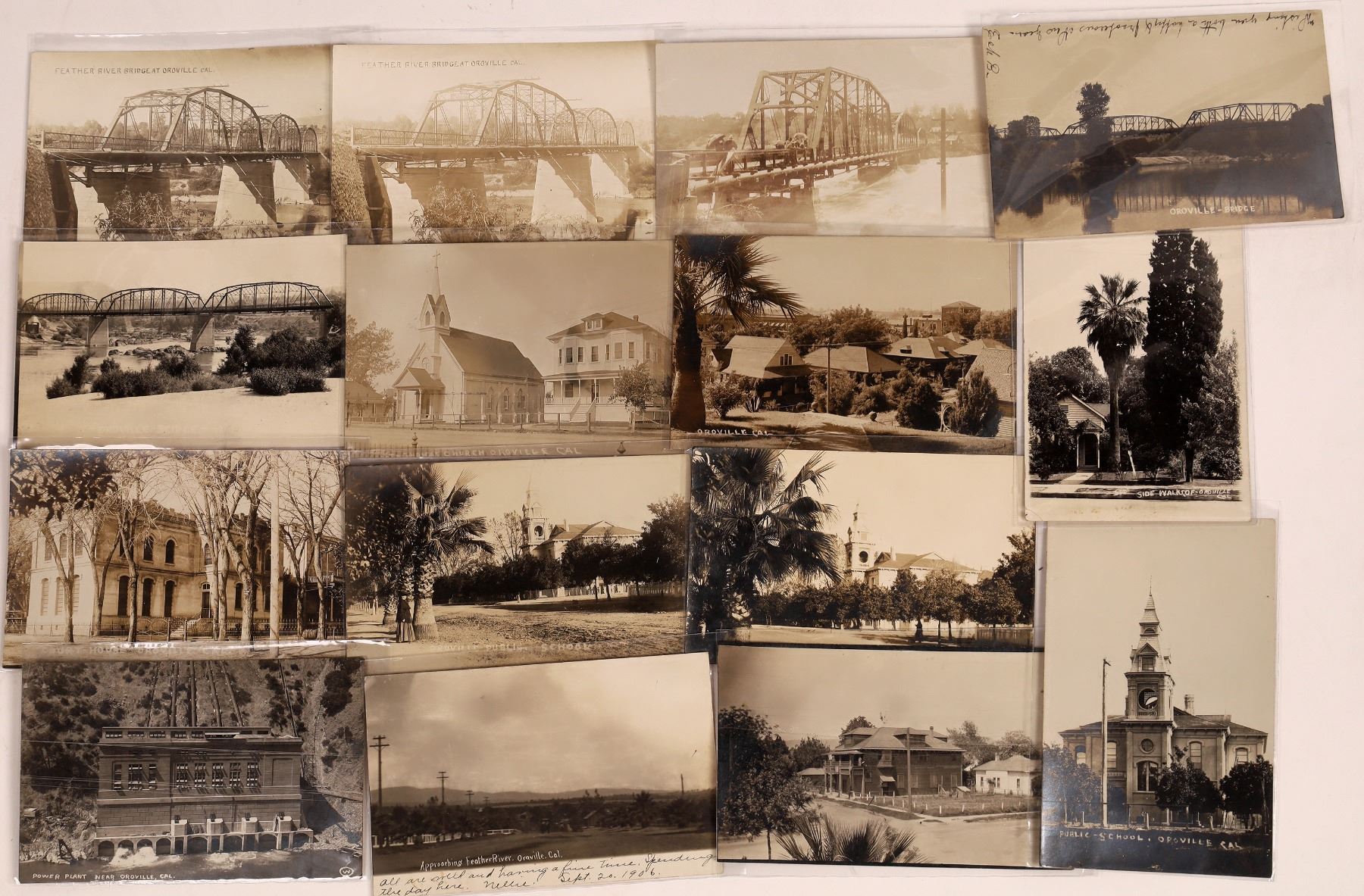 Lot of 15. Includes Power Plant, Feather River, schools, residences, Court House, street scenes, and bridges.