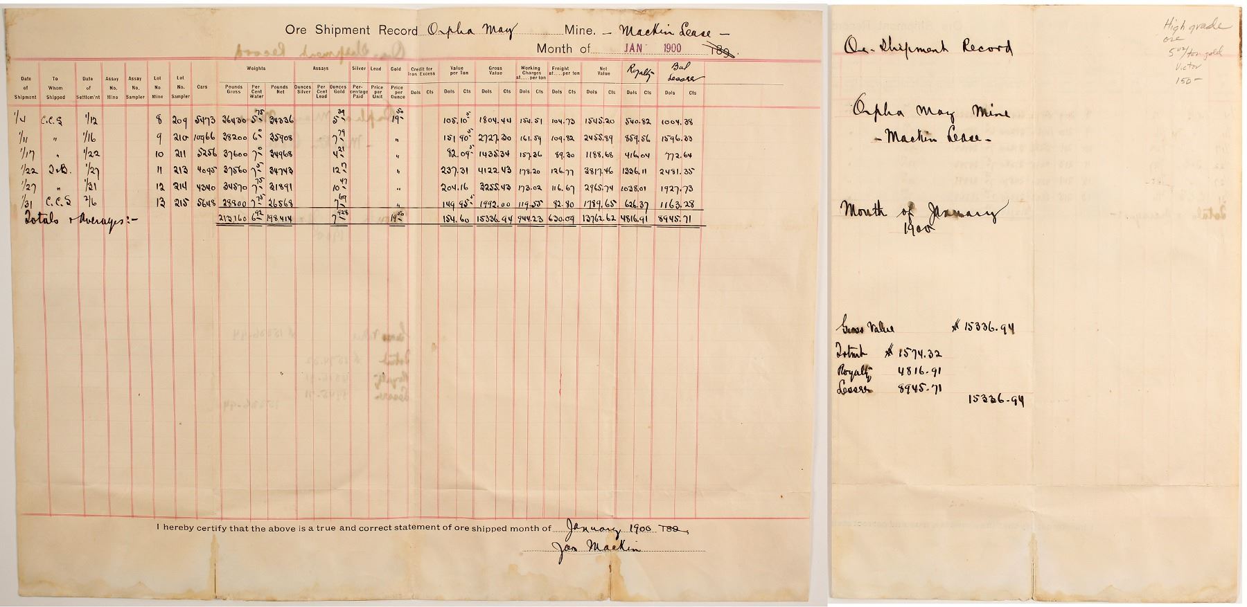 High grade ore shipment record. Bottom tears and stains Colorado Victor 1900