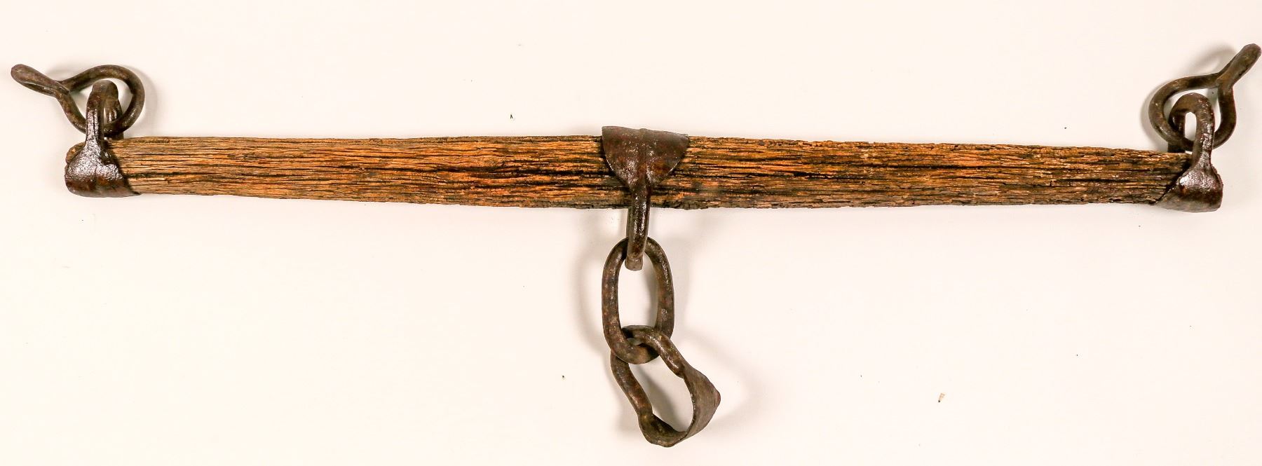 Here is a very early piece of Americana. It is from a local desert farm area, from one of the old time ranch sites. It was used to harness the Oxen as they pulled plows or wagon loads of goods. Really nice weathered wood, with hand made and hammered iron fittings, on the ends and the middle. 36" long . Would be an excellent display in your man cave, over the door way. beautiful piece.Really nice looking, great condition. ( RH). State: Nevada City: Reno Date: 1880's 1900.