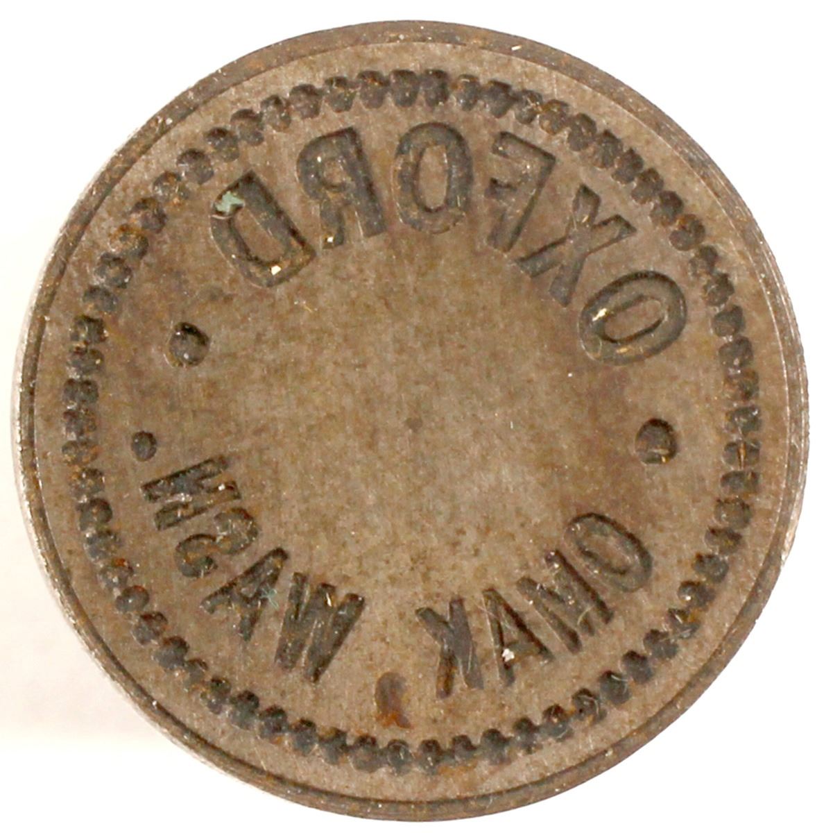 1 token die self identified from Oxford, WA. 21mm: Omak Wash. Northwest Territorial Mint Historical Die Collection.