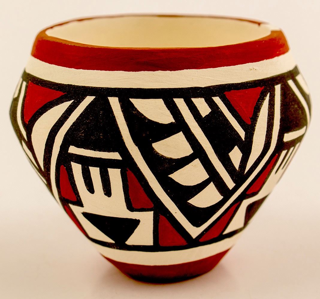 Rare San Felipe jar signed by P. Latoma. Geometric designs, 2" h x 2.5" diameter. Date: c.2013 Location: San Felipe Pueblo, New Mexico HWAC # 52750