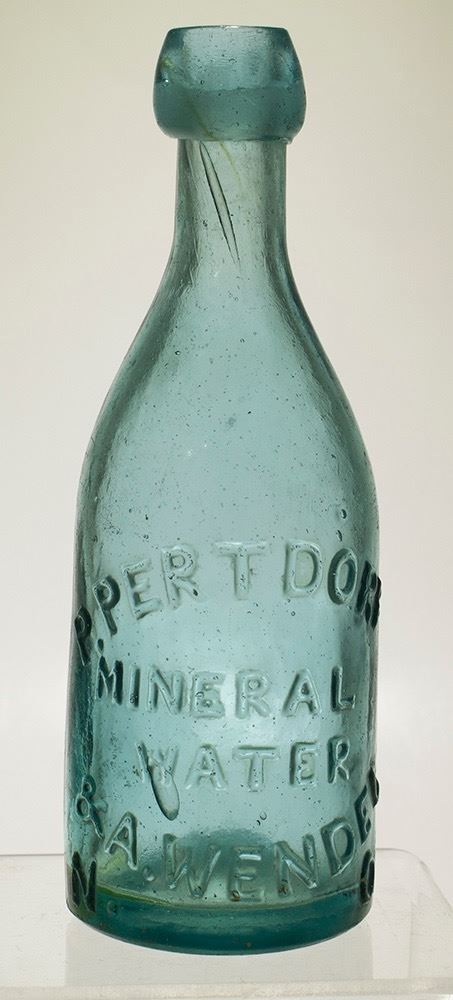 P. Pertdorf mineral water and A. Wendel. Aqua, pontil, applied top soda, near mint. HWAC# 47016 Date: Location: New Orleans, Louisiana