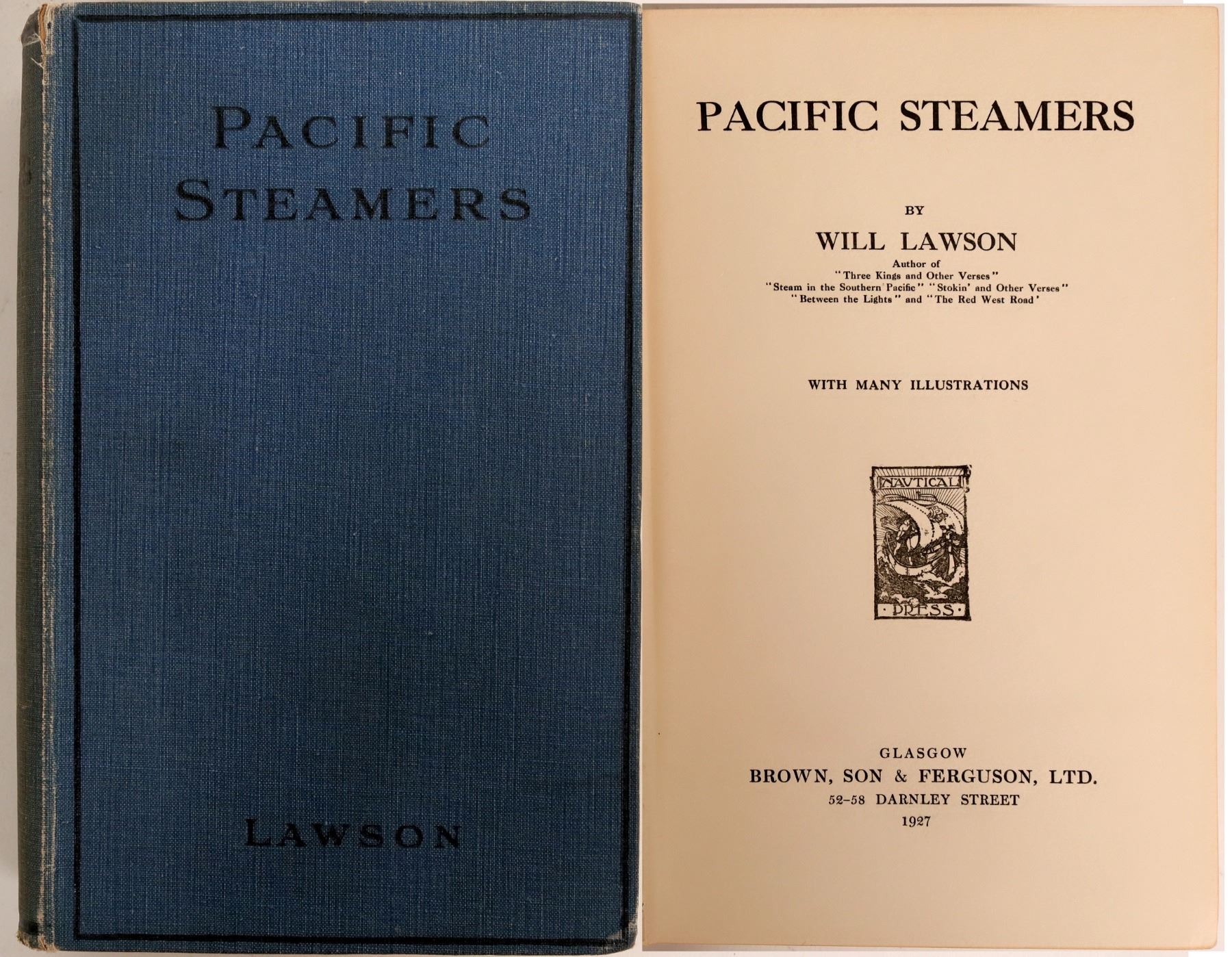 Rare. Detailed history and listing of steam ships in the Pacific, changes in technology, with ships mainly from Australia, New Zealand, United States, and Canada. 244 pp. Harcover. No dust jacket. Printed by Brown, Son & Ferguson, Ltd., Glasgow. Blue boards. Toning to pages. Index. Numerous illustrations. Wear to boards.