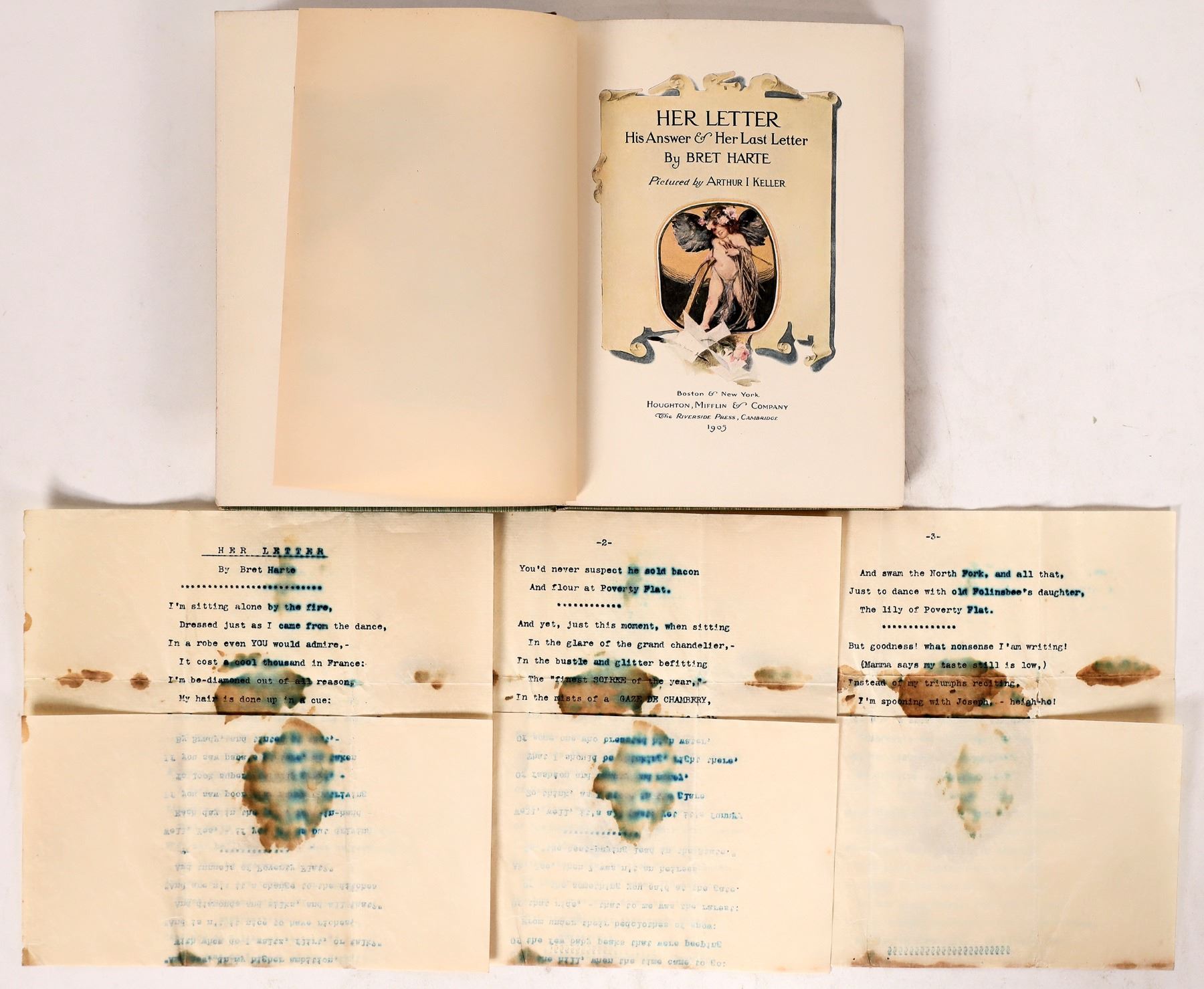 An interesting find. Three pages with passages from Bret Harte's 1870s poem, "Her Letter."