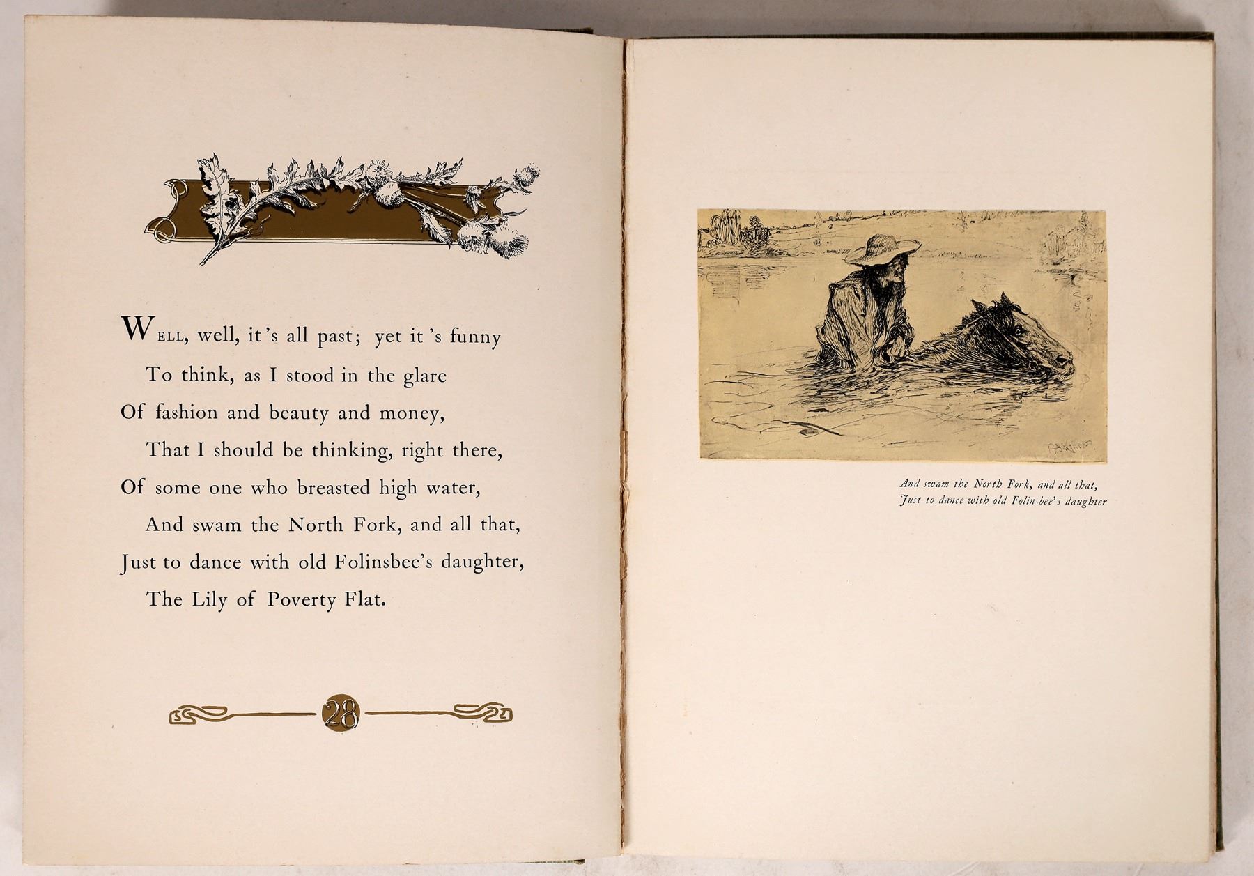 These were found by the consigner under the floor of an old house in Forest City in Sierra County, California. Known as a bit of a wanderer, Harte went from gold camp to gold camp. According to the consigner, the watermarks on the paper are conducive to the time period and the type face matches those of typewriters of that time. Harte, who died in Europe in 1902, never saw this poem published as it was not until 1905 that the first edition was published by Houghton, Miffin & Company, which happens to be included in this lot.