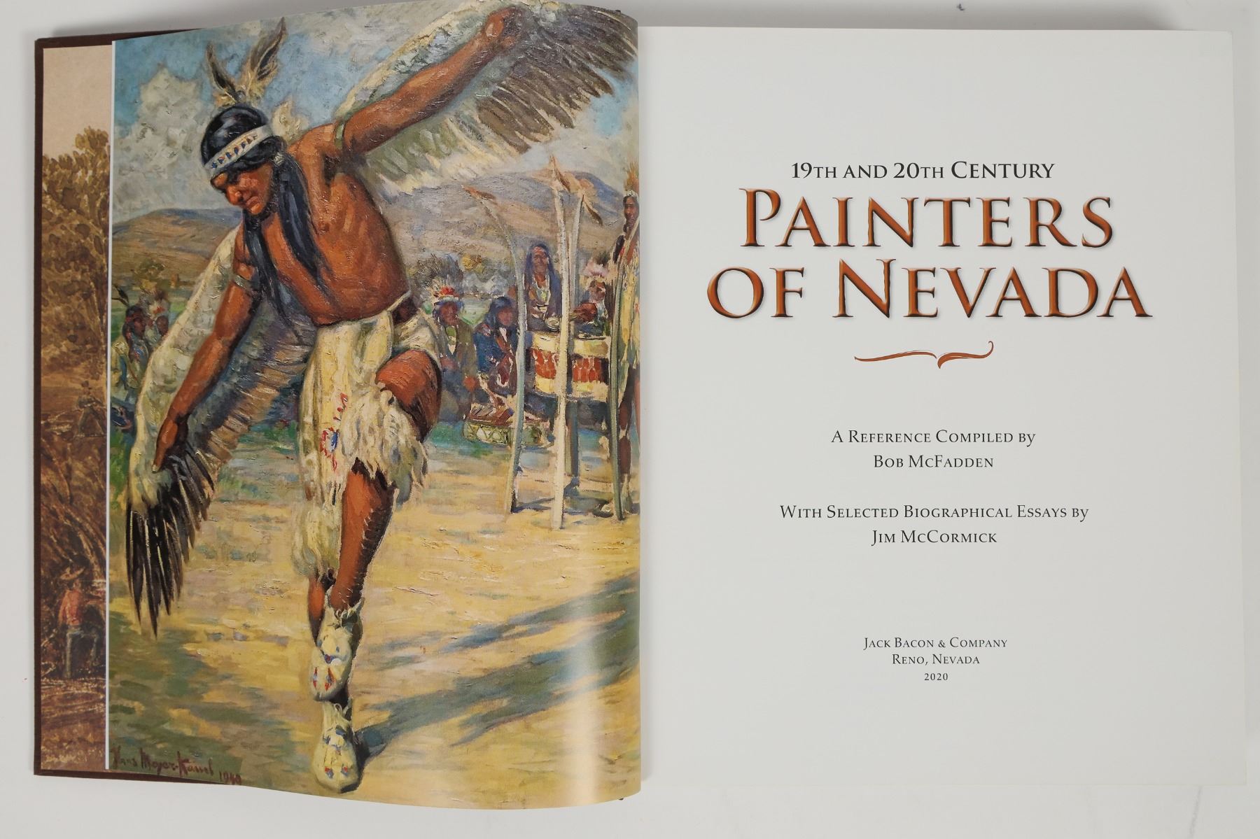 19th and 20th Century Painters of Nevada, Key Nevada art reference work in like new condition by Bob McFadden. Hardbound with dust cover, 407 pages with color illustrations throughout. Published by Jack Bacon & Company, Reno, NV 2020. Beautiful and important references work in coffee table format. Invaluable for art lovers and historians alike.