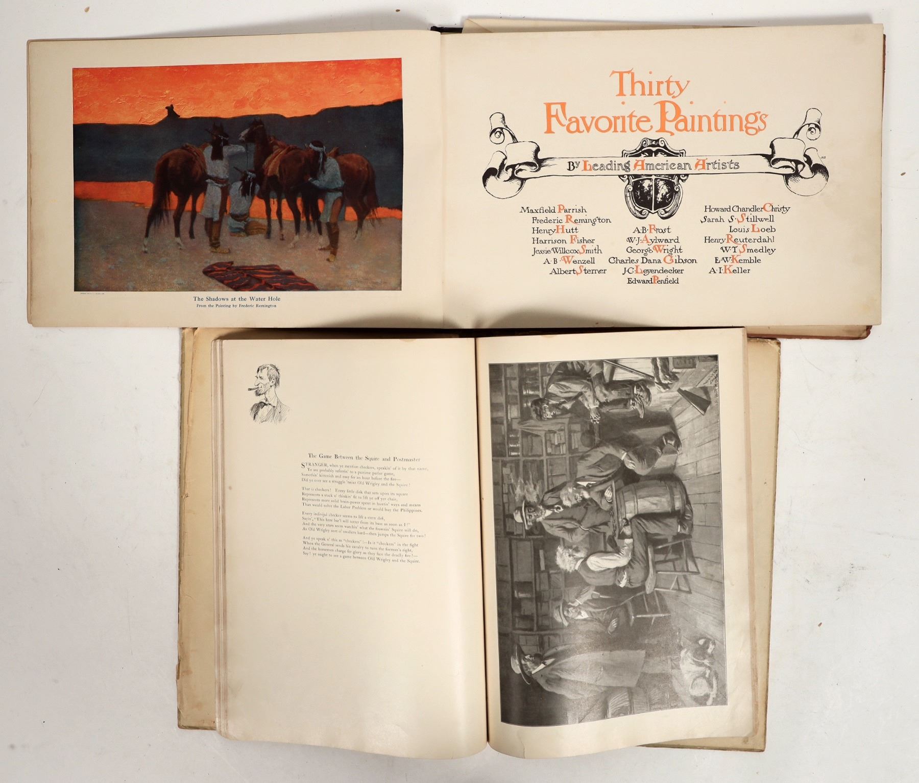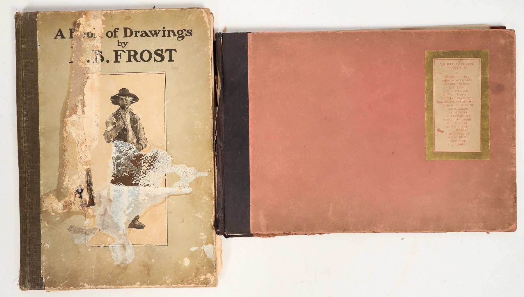 Lot of 2 different. 1) A Book of Drawings by A.B. Frost with an introduction by Joel Chandler Harris and verse by Wallace Irwin. PF Collier & Son. 1904. 38 illustrations. 15 x 11" Covers heavily damaged. Spine loose. Wear to pages. 2) Thirty Favorite Paintings by Leading American Artists incl. Remington and Frost. PF Collier & Son. 1908. 11 x 16" Covers detached.