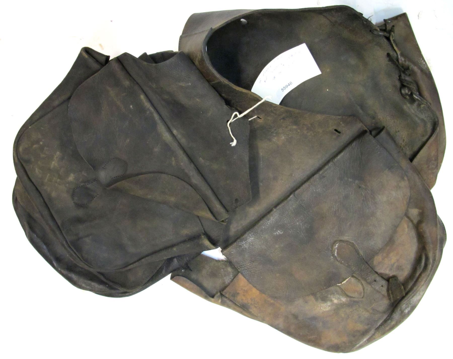 Two unmarked saddle bags made in the US Cavalry style. Possibly circa 1915-25. Condition issues. Date: City: State: HWAC# 55946