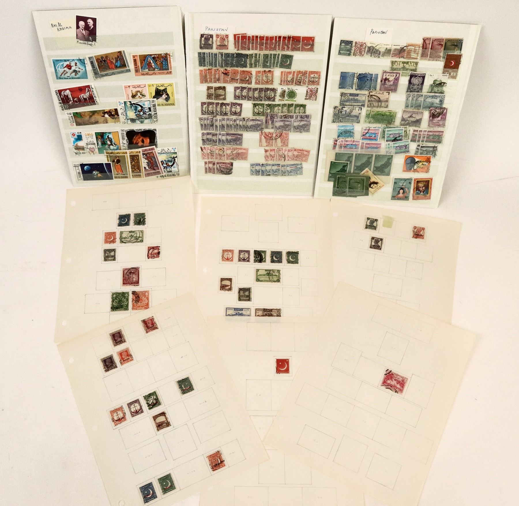 About 300 Pakistan stamps, 1947-newer. All used, with dupes on newer issue.