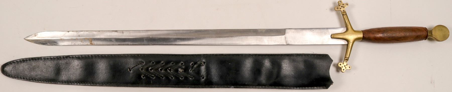34" Pakistan stamped double edge stainless sword with scabbard. Brass accents