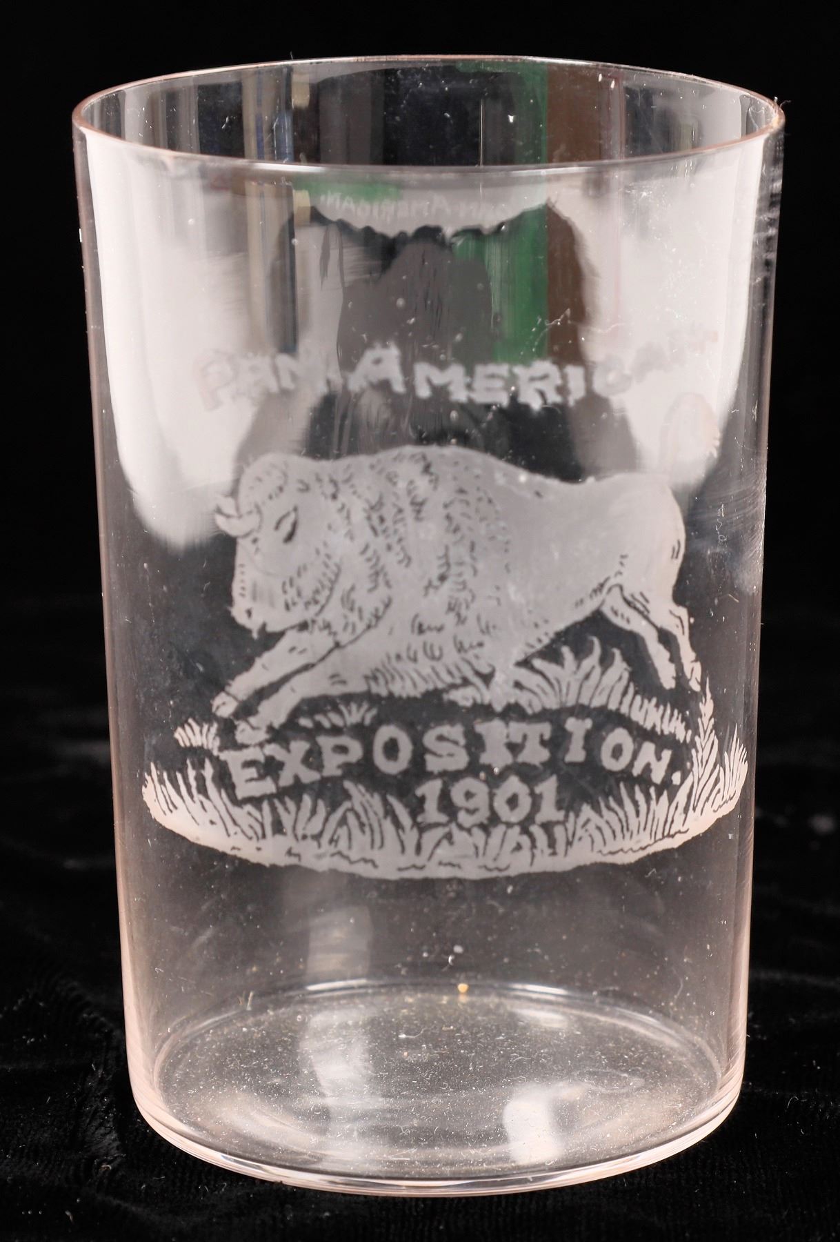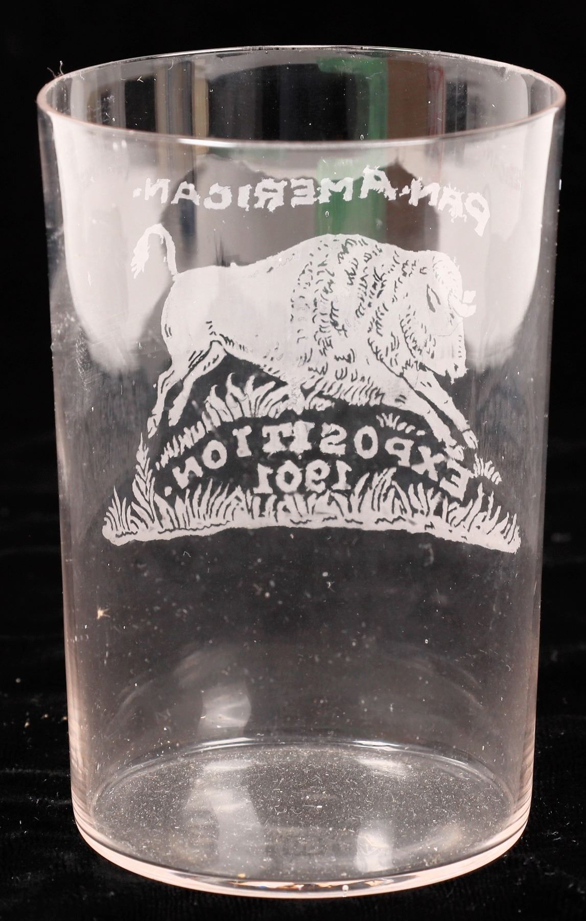 Thin wall glass Pan-American/Exposition/1901 souvenir beer glass. 3.6". No apparent chips or cracks.