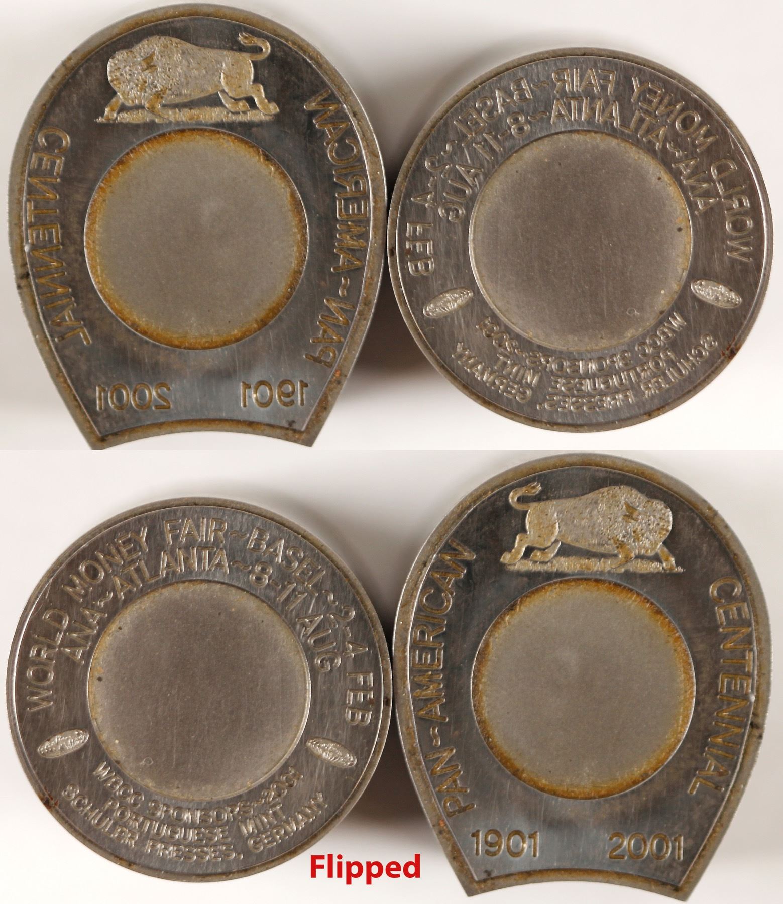Pan-American Centennial, 1901-2001 encased lucky cent die. World Money Fair, Basel; Ana~Atlanta 8-11 August encased cent die. NWT Mint Historical Die Collection. City: State: Date: HWAC# 80706