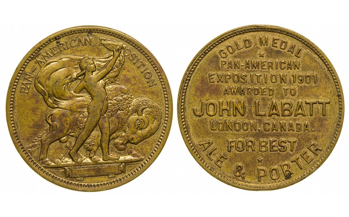 Token for the "Gold Medal Awarded To John LaBatt - London, Canada for Best Ale & Porter." Nice example, in very good condition, shows minor wear. Unusual. City: Buffalo State: New York Date: 1901 HWAC# 28453