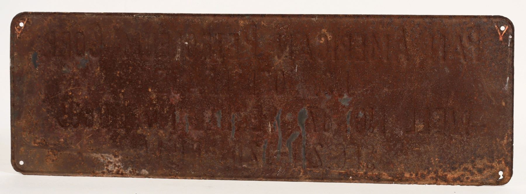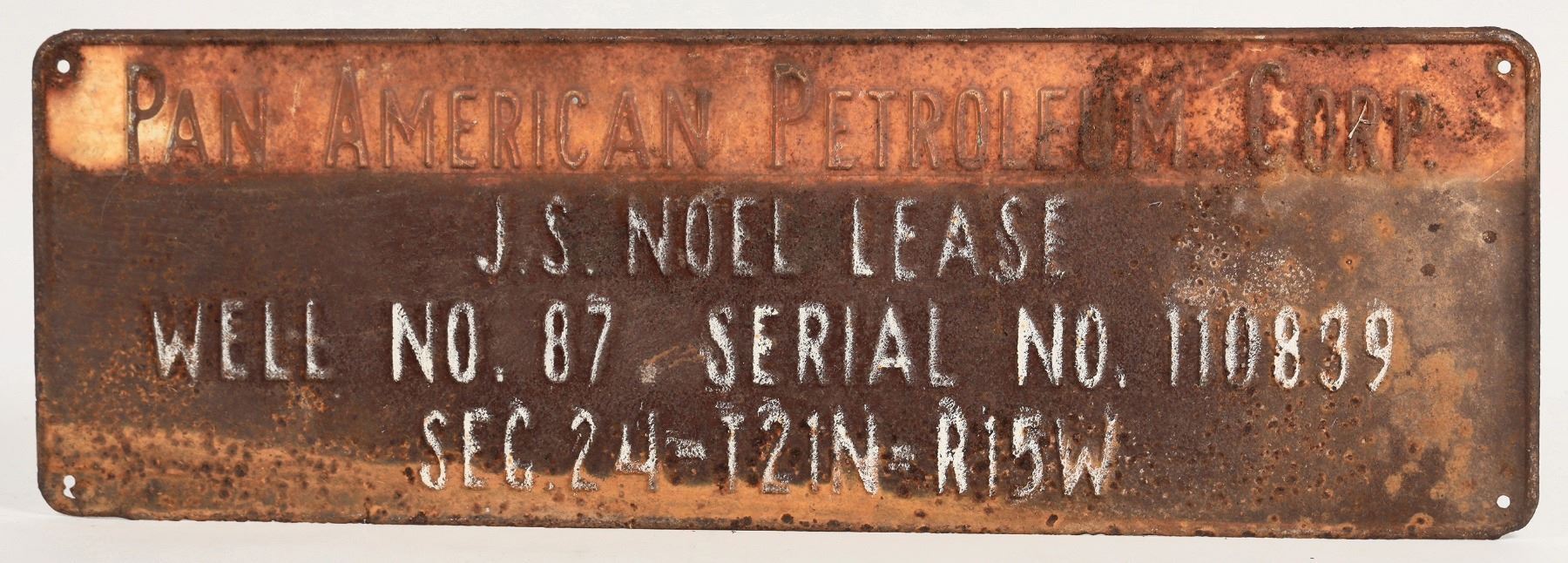 Heavily rusted Pan American Petroleum sign. 10x30". Please inspect.