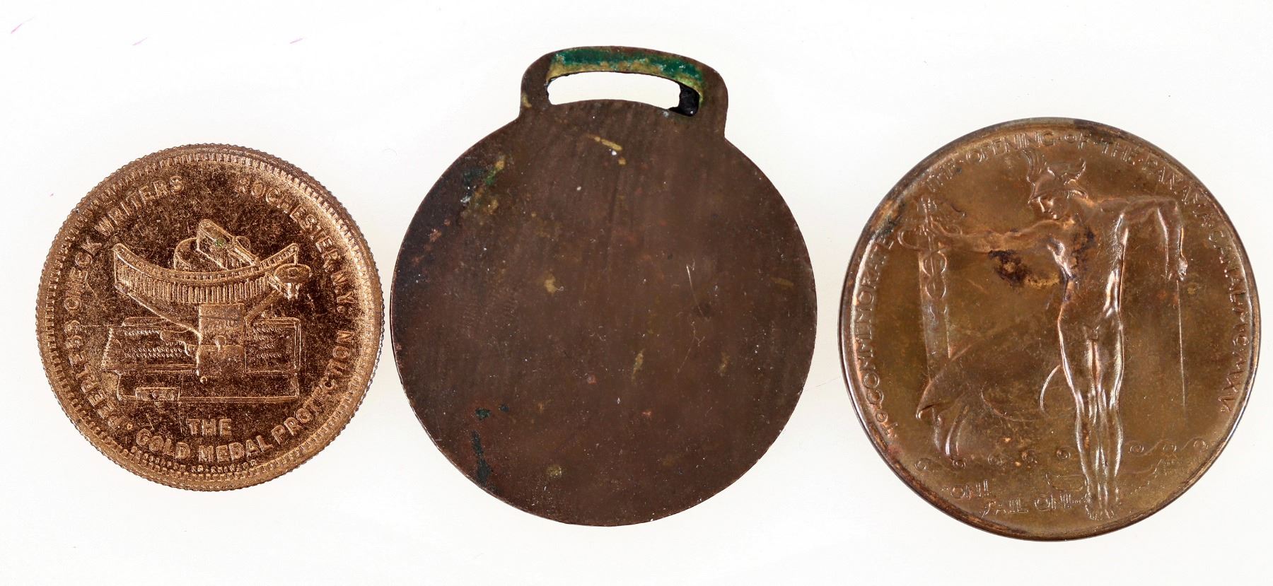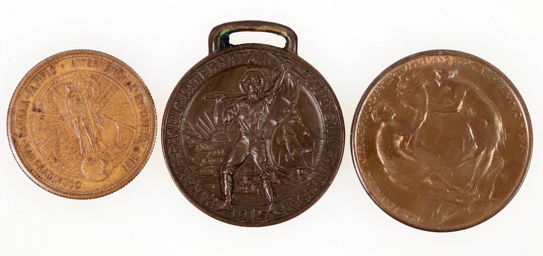 Lot of three: 1) HK-400 official medal designed by Robert Aitken; 2) Peerless Check Writers; 3) 1915 Panama Pacific Exposition watch fob.