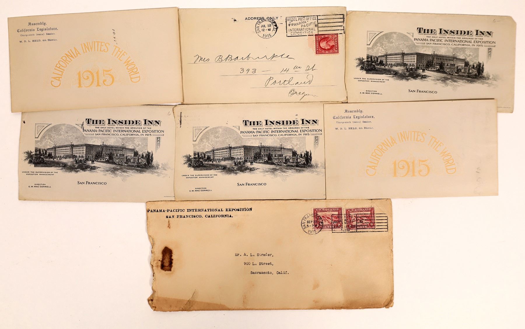 This lot contains postal covers from the Panama-Pacific Int. Expo. all dated 1913-1915. Seven pieces in all.