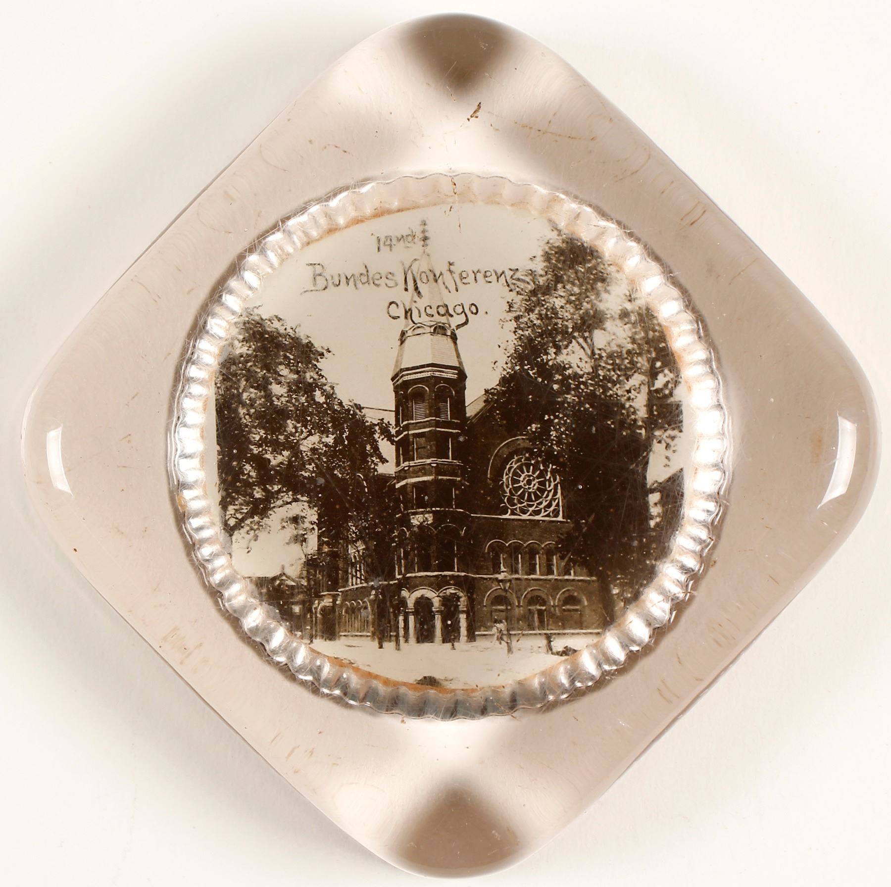 Inscribed with "Wedding Day, June 16, 1904"(Easte Deutche?) on the other side of paperweight reads "14th Bundes Konferenzi / Chicago. 3.25" x 4".