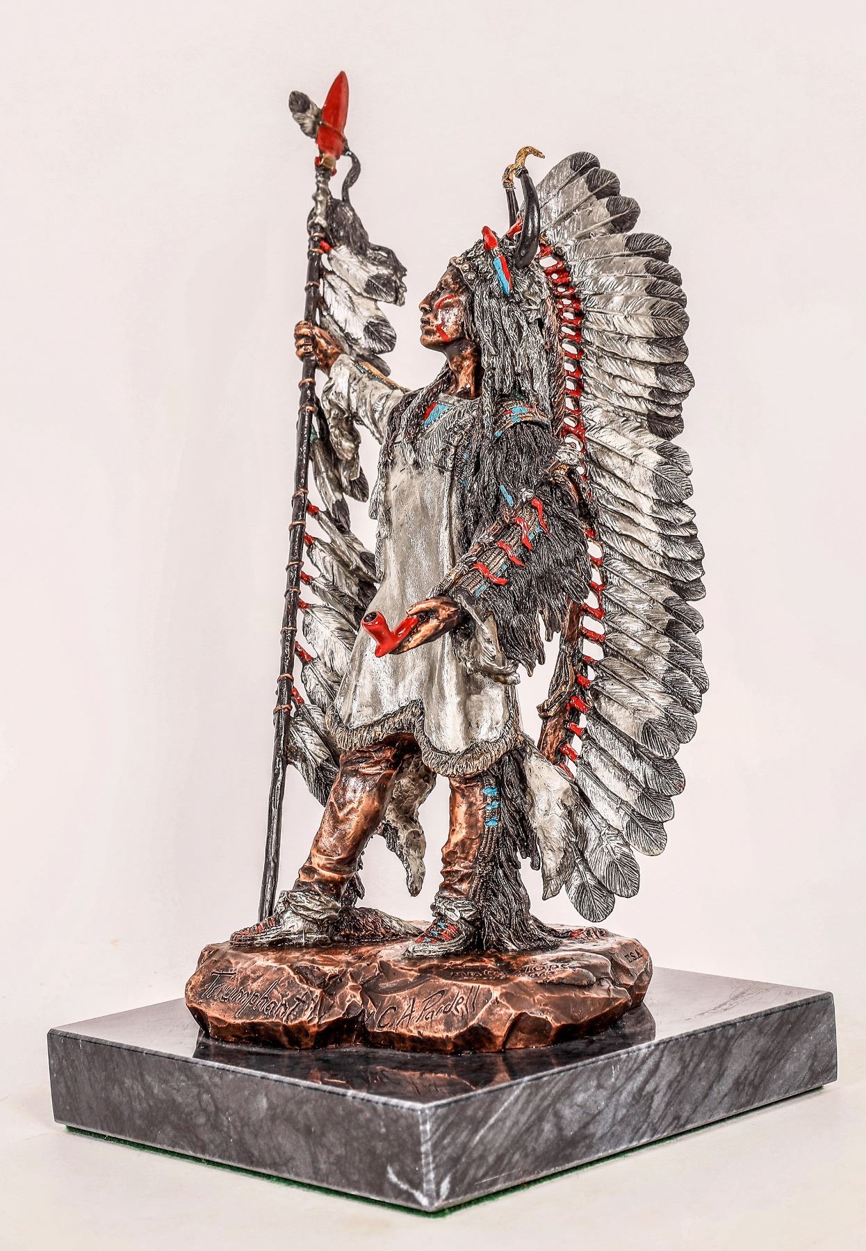 This is from The Legends Collection, a mixed media piece entitled "Triumphant". It is Limited to 750. It measures 14"x 12"x 7" and depicts a Brave raising his lance in victory. Piece is by C.A. Pardell and is in mint condition. Please see photos for more details. [] [] [] [] []