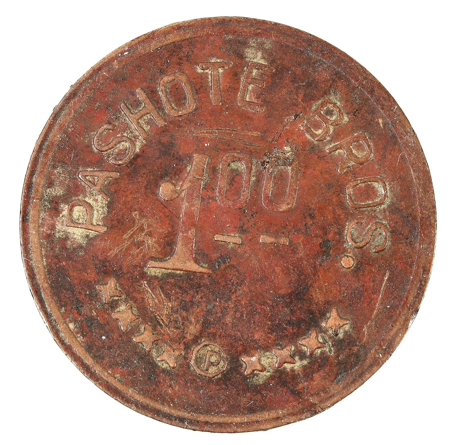 Rare! PASHOTE BROS. / 1.00 / P // IN TRADE / 1.00 / PAT. JUN. 1909 / INGLE SYSTEM; C., rd., 35 mm. General store, saloon & meats.