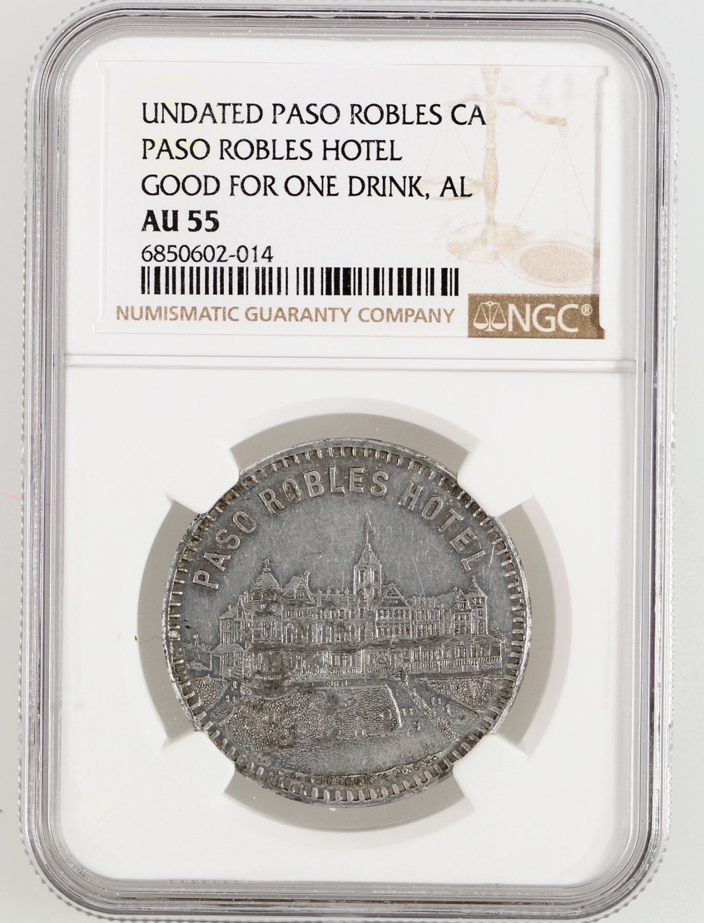 NGC graded AU 55. PASO ROBLES HOTEL / (edifice) / C.A. KLINKNER & CO. S.F.