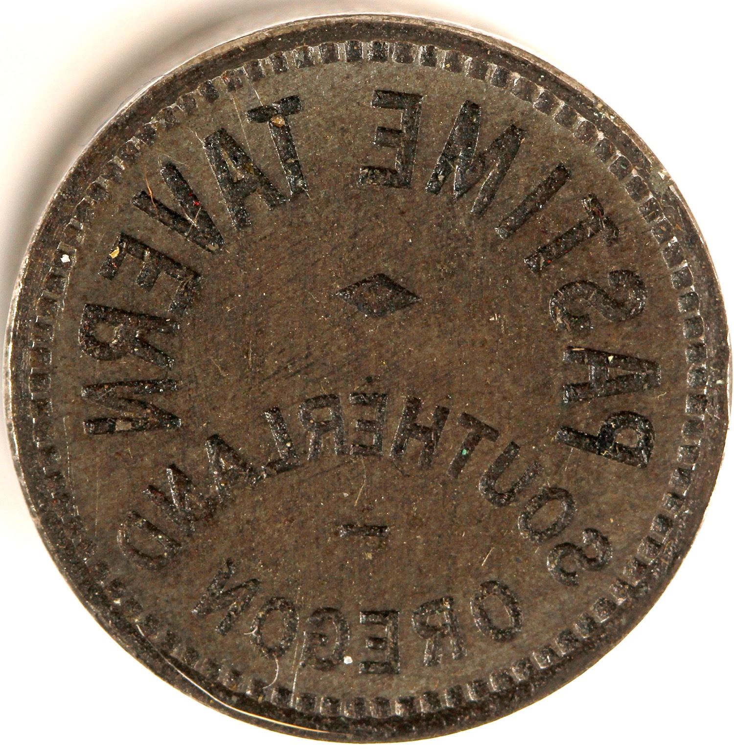 Pastime Tavern / Southerland / Oregon; 19 mm. NWT Mint Historic Die Collection. State: Oregon City: Southerland Date: HWAC# 86332