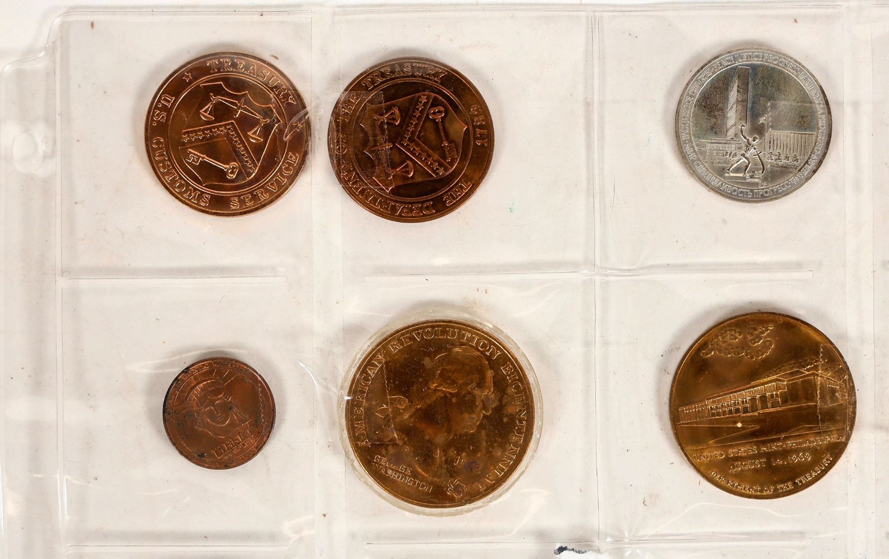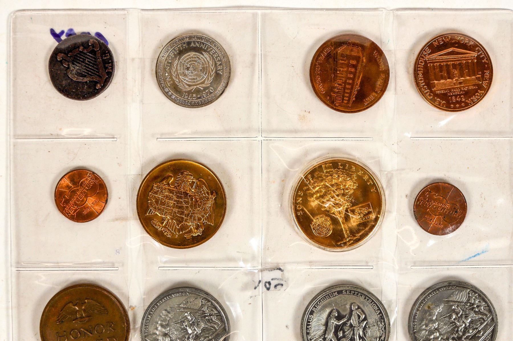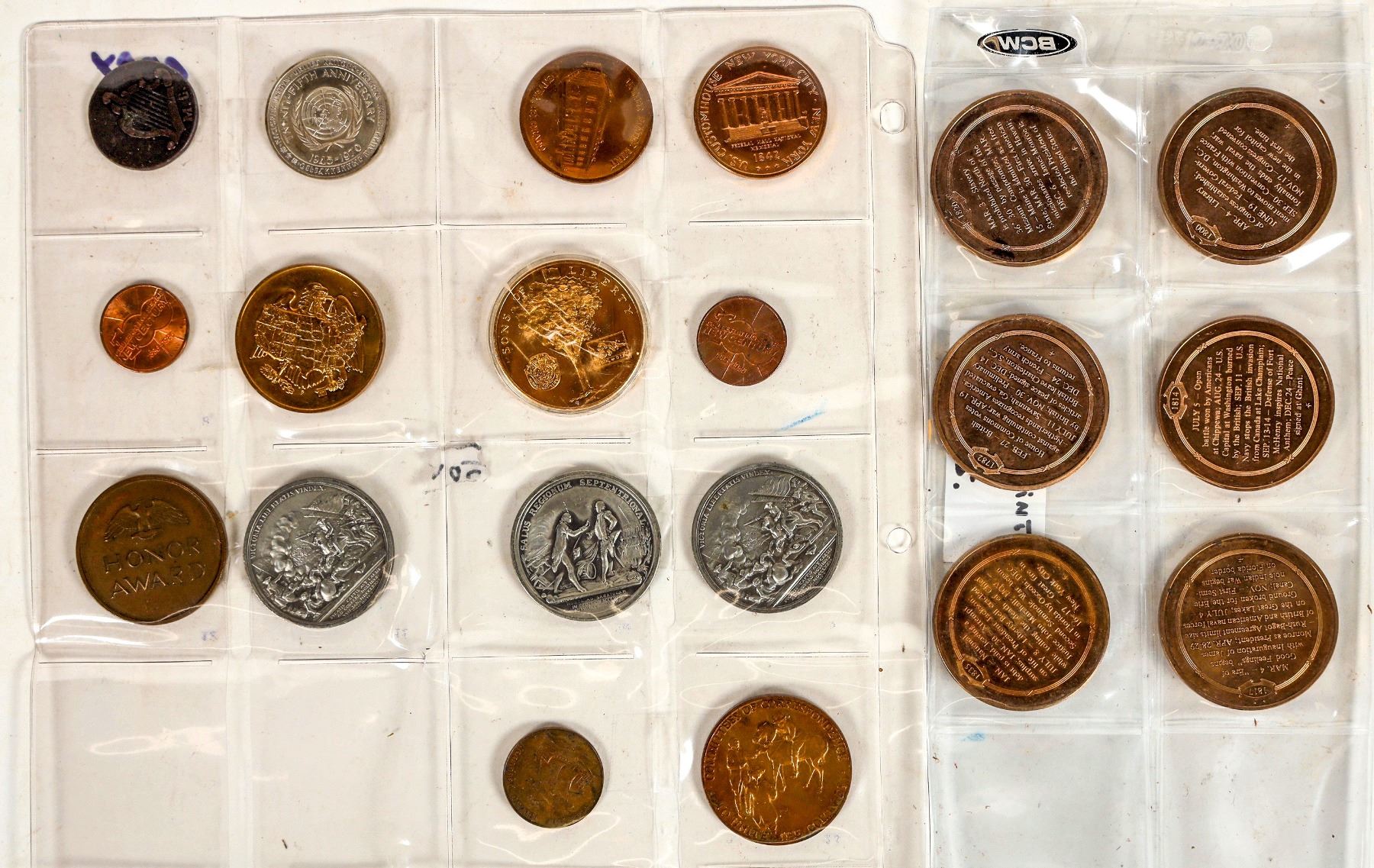 Group of 20 medals and commemorative coins celebrating the United States and moments in U.S. history. Variety of sizes, colors, and conditions; see photos.