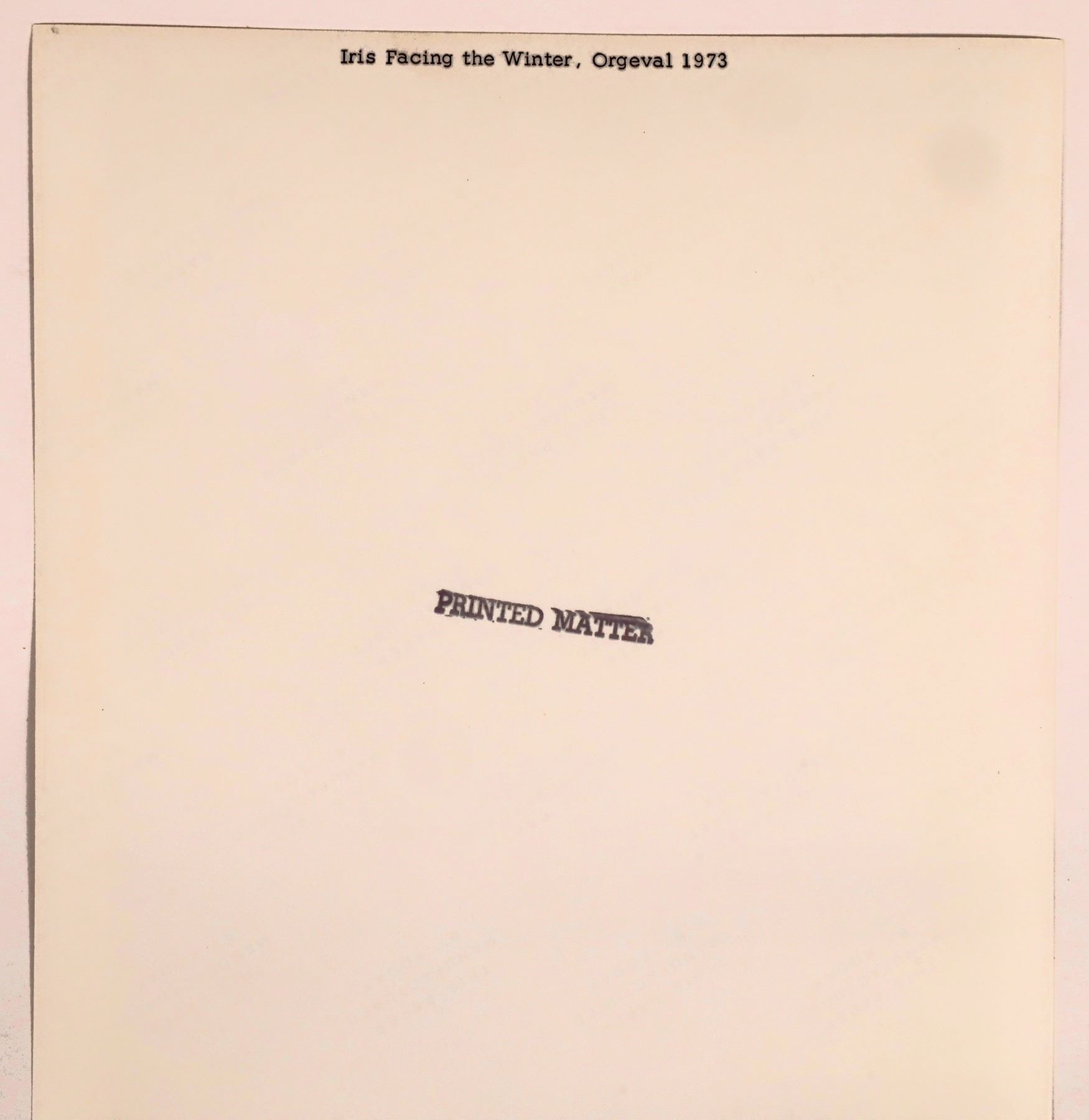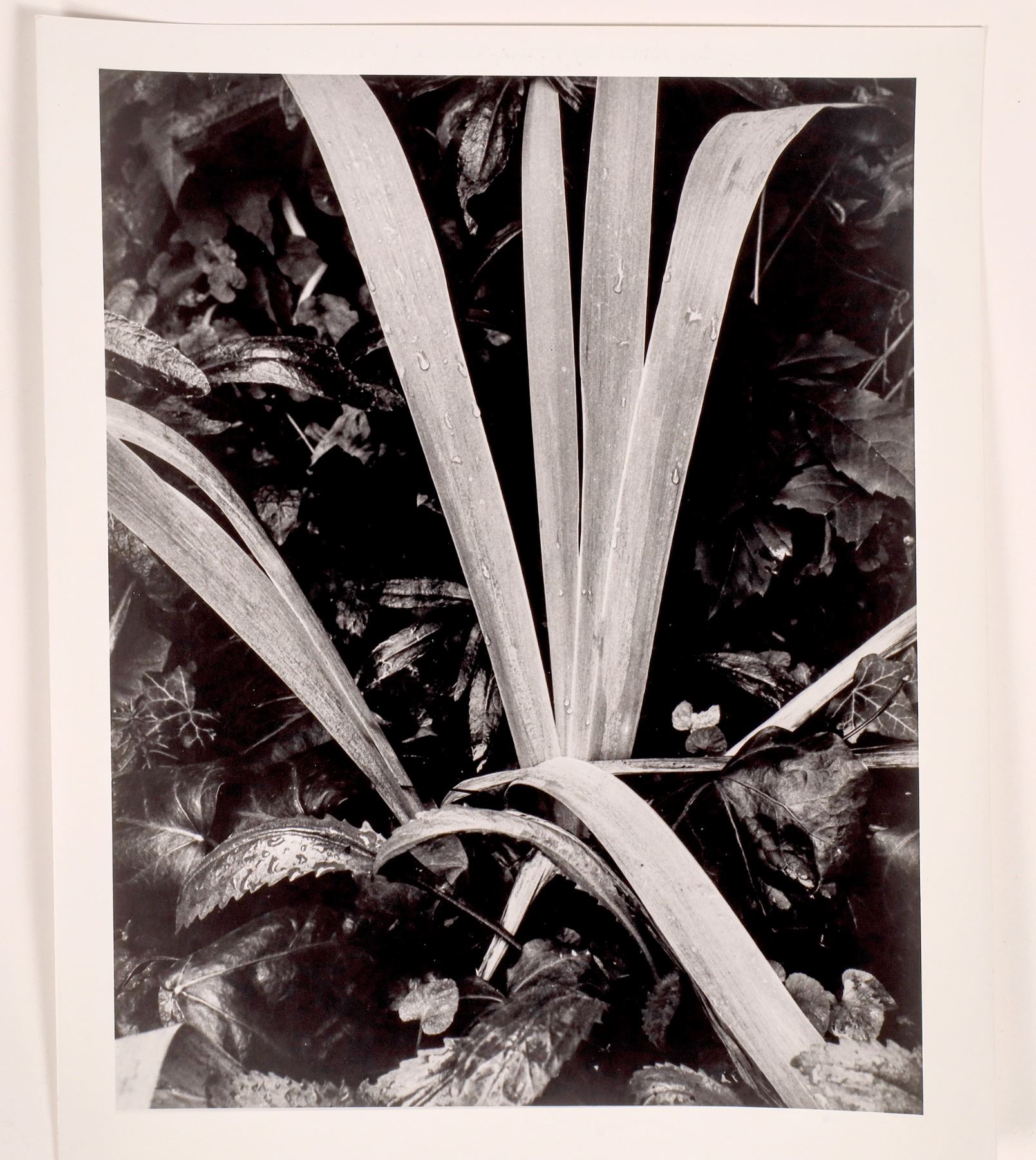 Print of Paul Strand's "Iris Facing the Winter" taken in Orgeval, France, 1973. This is a late work by Strand. He lived in Orgeval for the last 27 years of his life until his death in 1976. This print is from a collection of prints that were likely sent to Ansel Adams by Strand. Please see the preceding write-up for more information on this collection. This photograph has nice depth and variety of contrast. 8 x 10 inches, printed on Kodak paper. Very good condition.