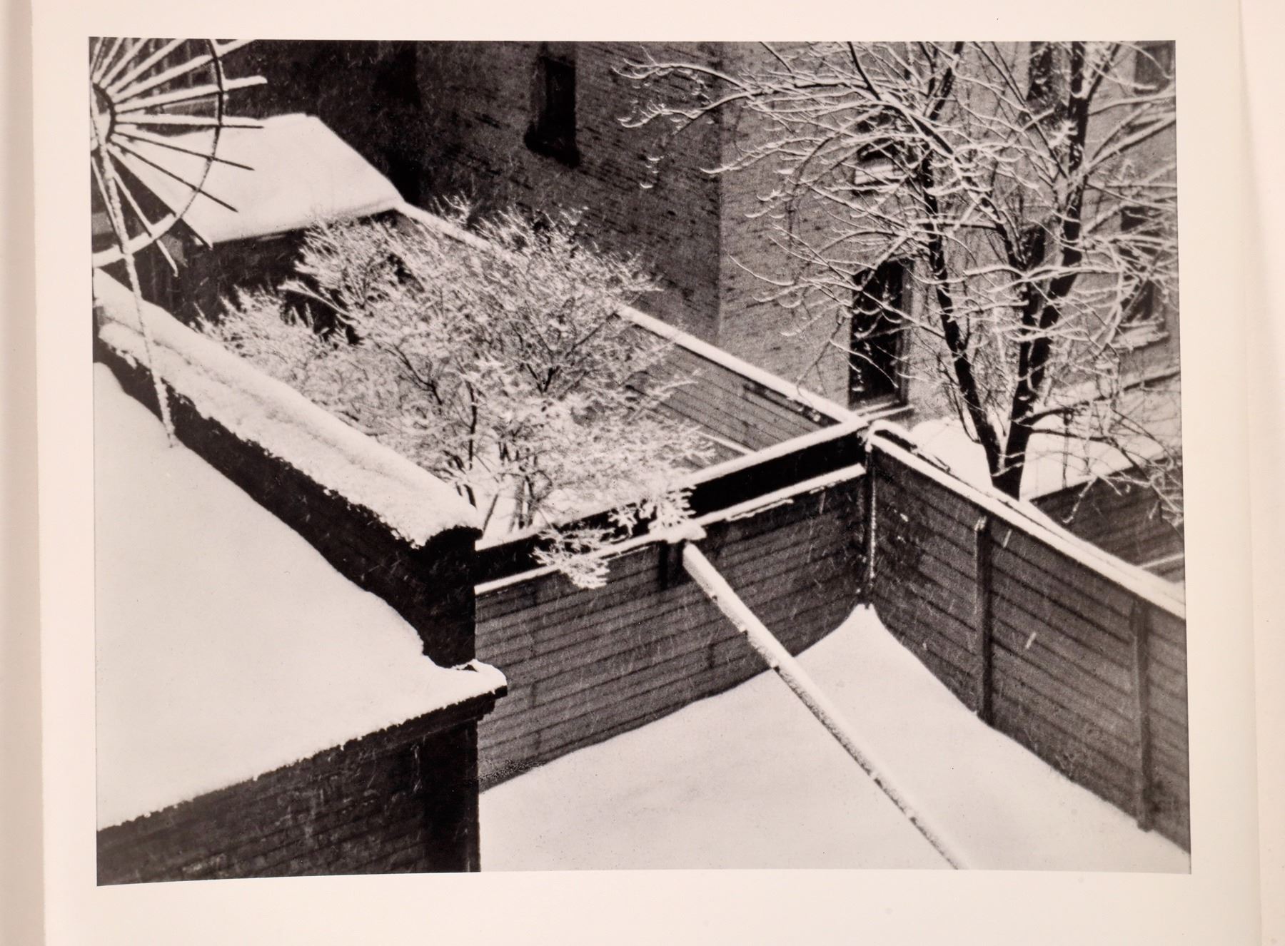 Print of Paul Strand's "Snow, Backyards" taken in New York City, 1914. This print is from a collection of prints that were likely sent to Ansel Adams by Strand. Please see the preceding write-up for more information on this collection. This is an early Strand work that is not as sophisticated as some of his other works. The image is slightly out of focus. However, it still has great contrast between the snow and the buildings. 8 x 10 inches, printed on Kodak paper. Very good condition.